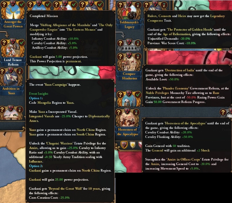 Особо стоить отметить задание «Реформировать союргали» (Reform the Soyurghals), открывающее доступ к уникальной механике Тимуридов — новому типу субъектов: