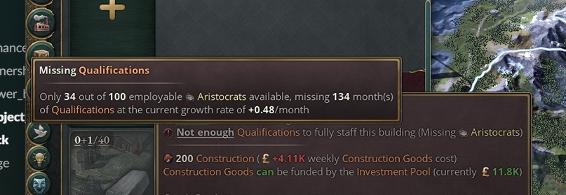 Отображение квалификации претерпело значительные изменения. Раньше в окне области отображались все работники с должной квалификацией для определённой должности, независимо от того, был ли у них шанс получить её. Например, многие капиталисты могут обладать квалификацией механиков, но вряд ли они откажутся от владения заводом и начнут заниматься механикой для души. Дополнительную путаницу вносило предупреждение «Недостаточная квалификация» при постройке сооружения или при смене производственного метода, так как оно учитывало только безработных и крестьян. То есть по факту оно было бессмысленным.