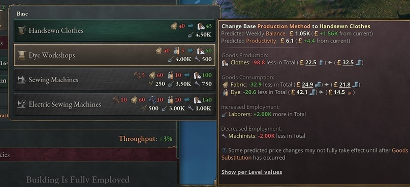 Подсказка для изменения методов производства теперь намного точнее предсказывает изменения, так как учитывает больше факторов, чем раньше (смена занятости, производительность, особенности областей и т. д.). Кроме того, исправлено несколько ошибок.