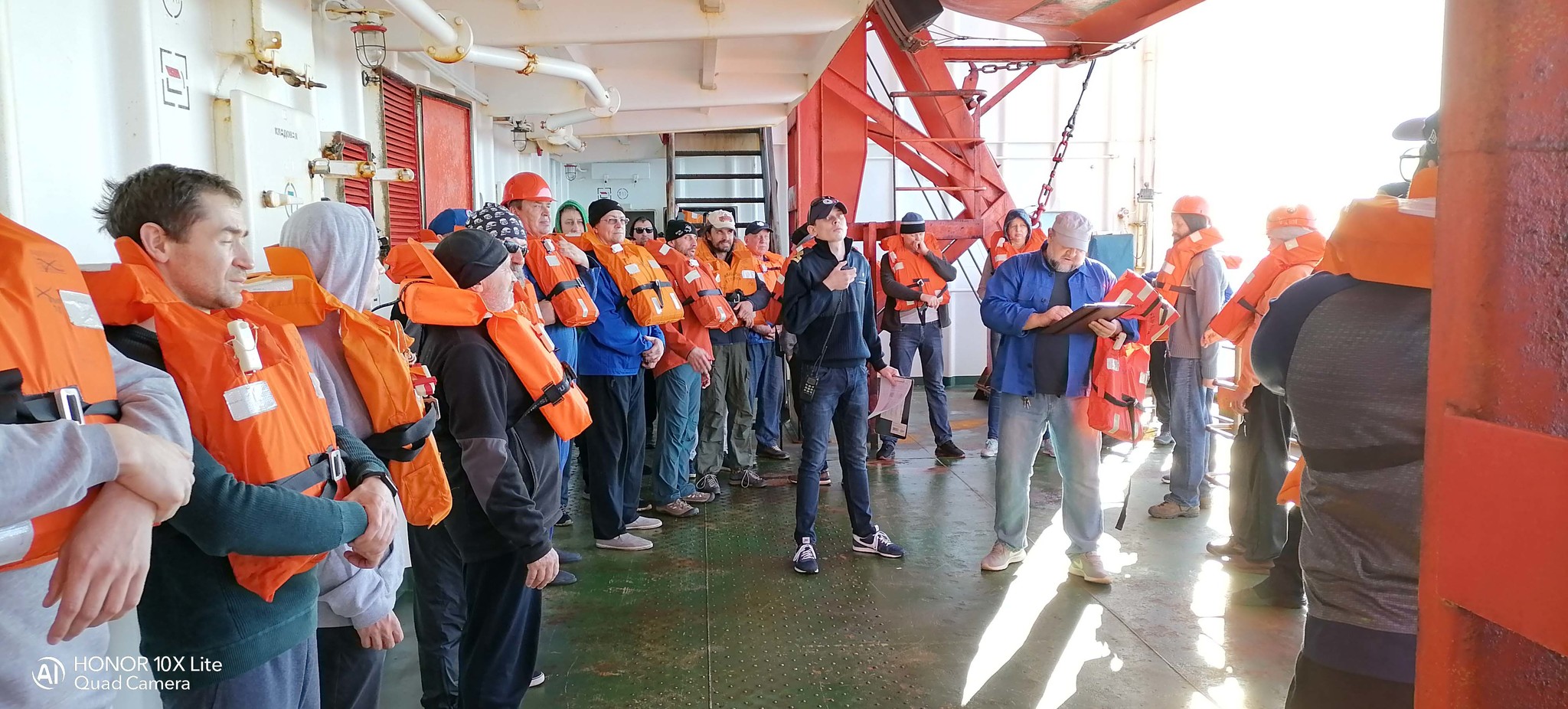 Вскоре после выхода из Кейптауна была поднята шлюпочная тревога, которую мы прошли без потерь. Адам и Войцех прибыли в назначенное время к месту встречи экипажей спасательной шлюпки № 2 по левому борту, мы с Моникой так же быстро прибыли к спасательной шлюпке № 1 по правому борту. Все спасённые в спасательных жилетах, тепло одеты и готовы к эвакуации.