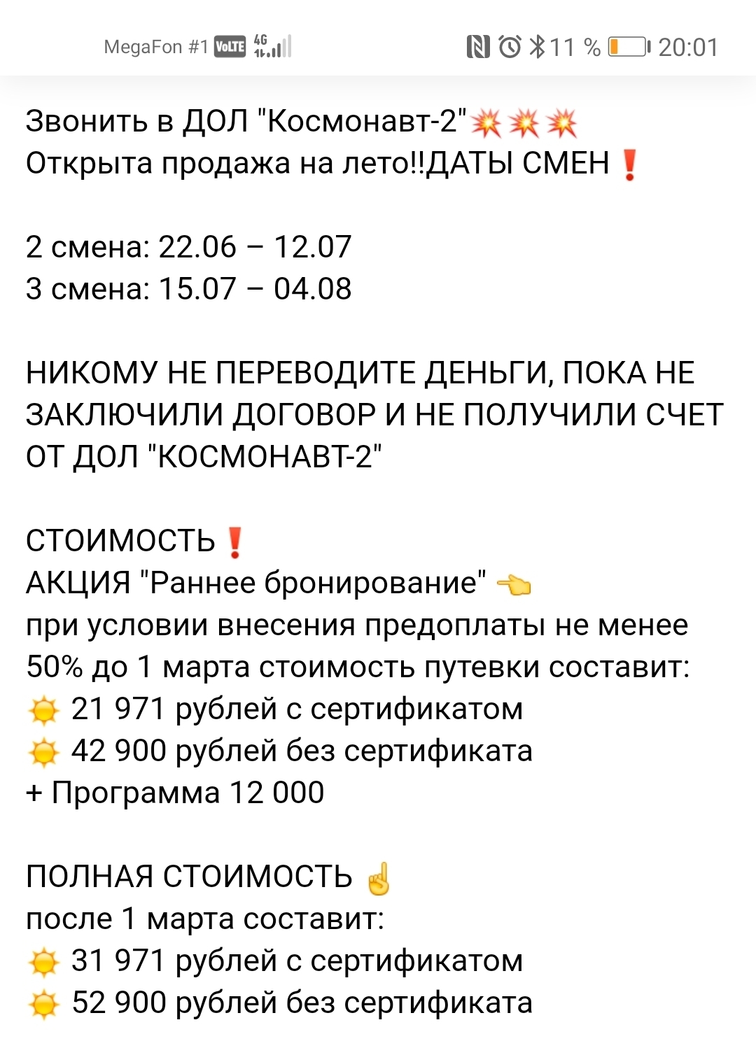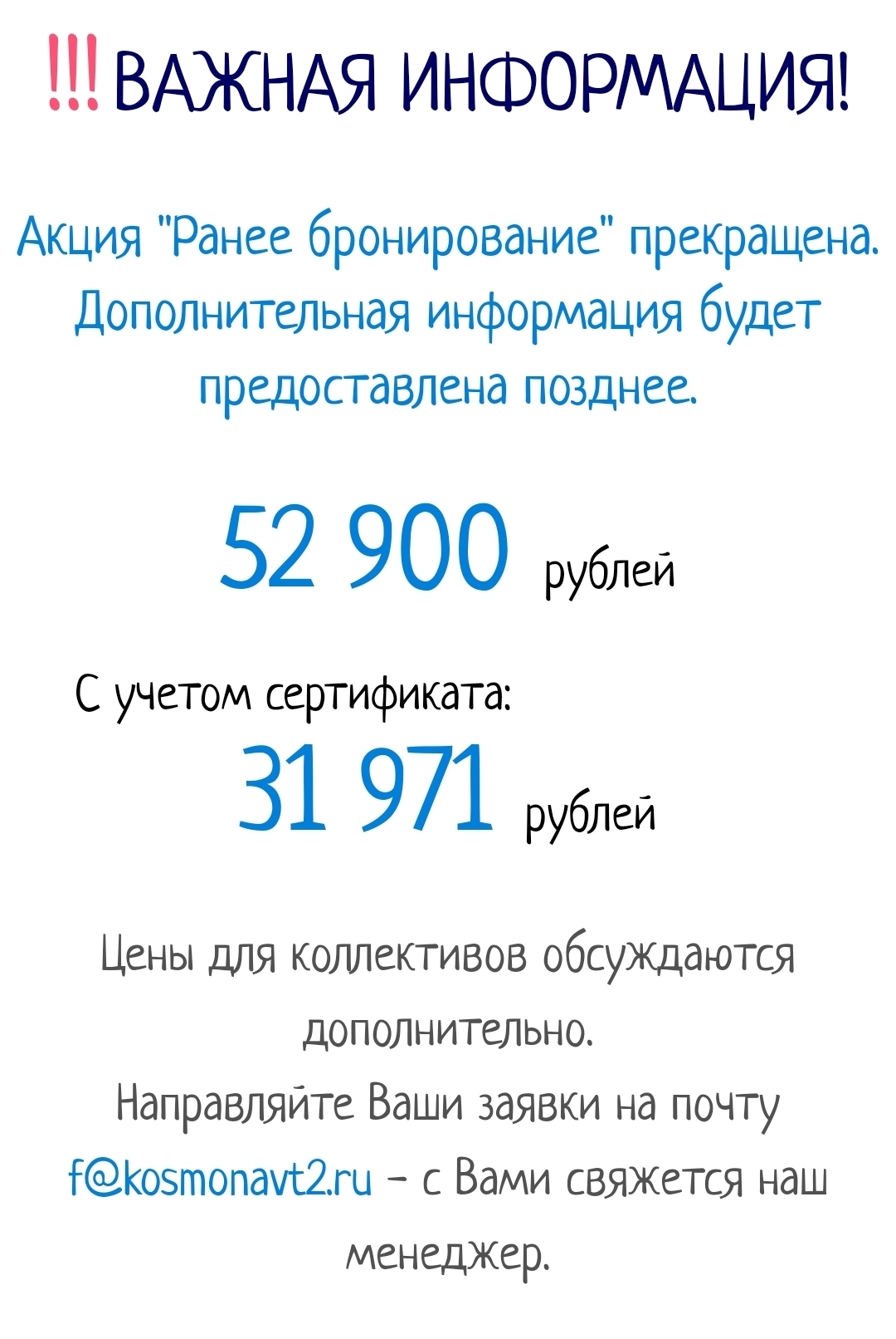 #comment_227669336 Дол Космонавт. О том, что ранние заявки лимитированы количеством ни разу не было объявлено. Ездили уже не один раз. Всё время платила по раннему бронированию. Объявленные сроки всегда выдерживались.