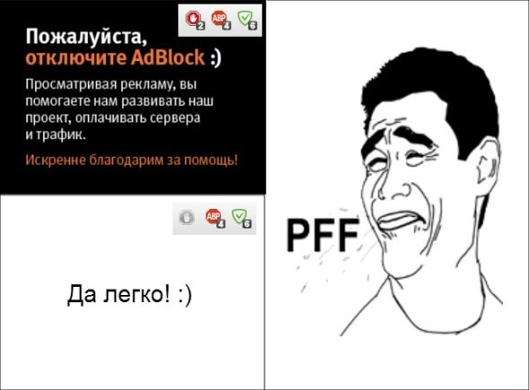 По сабжу - никогда не отключаю эдблоки (все 3). Админ, прости. Но я буду готов лучше платить по 100 рублей в месяц, чем смотреть на всё это говно.