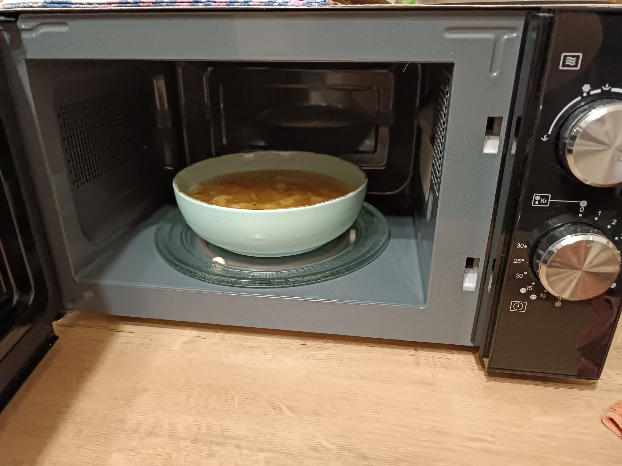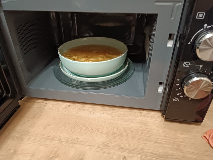 Я всегда раньше разогревал суп в микроволновке вот так.