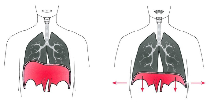 А когда мы выдыхаем, то мышца толкает легкие наверх выталкивая легкими