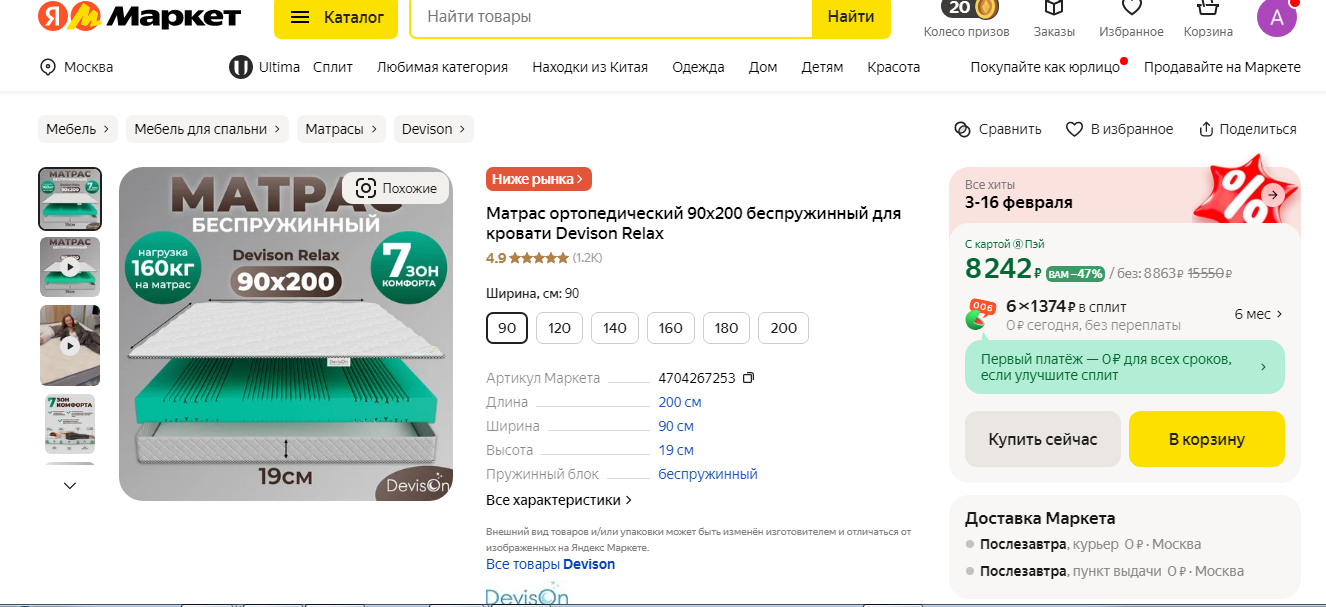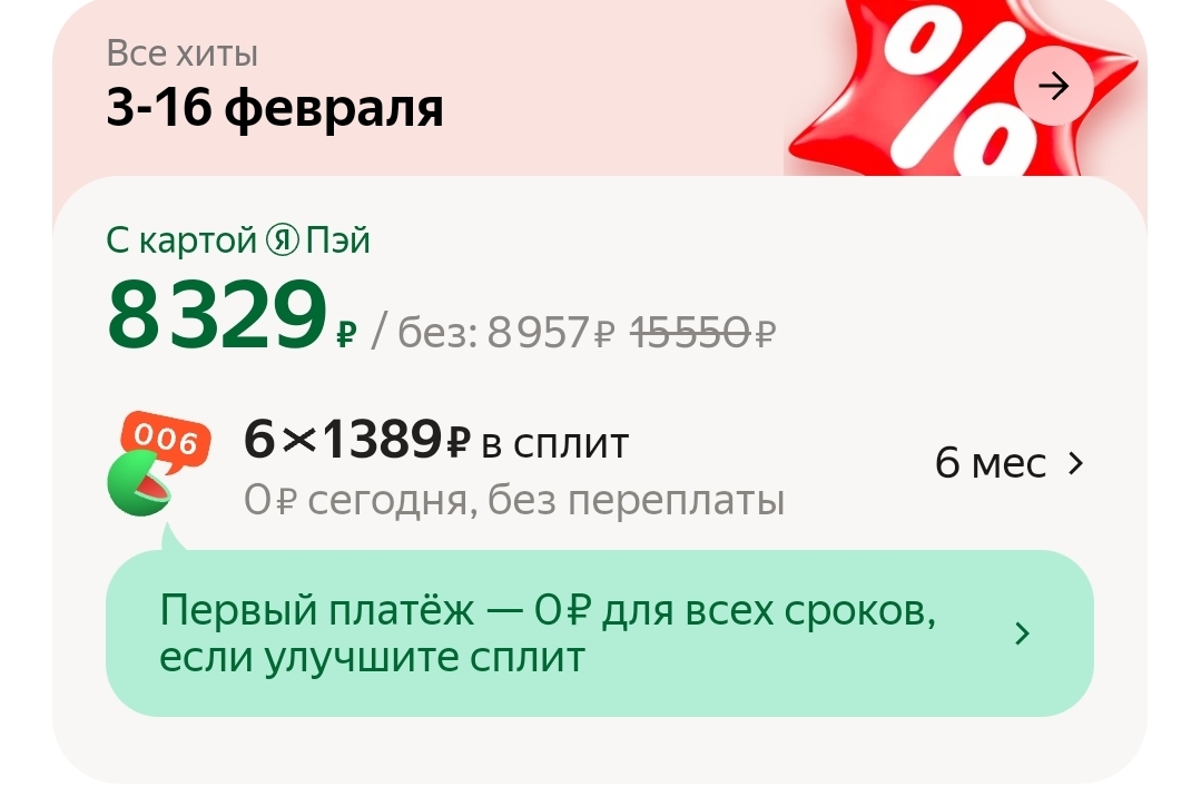 У меня две версии: 1 - без регистрации; 2 - после входа в аккаунт, никаких сплитов и карт яндекса не имею, я там не покупаю, всё очень дорого.