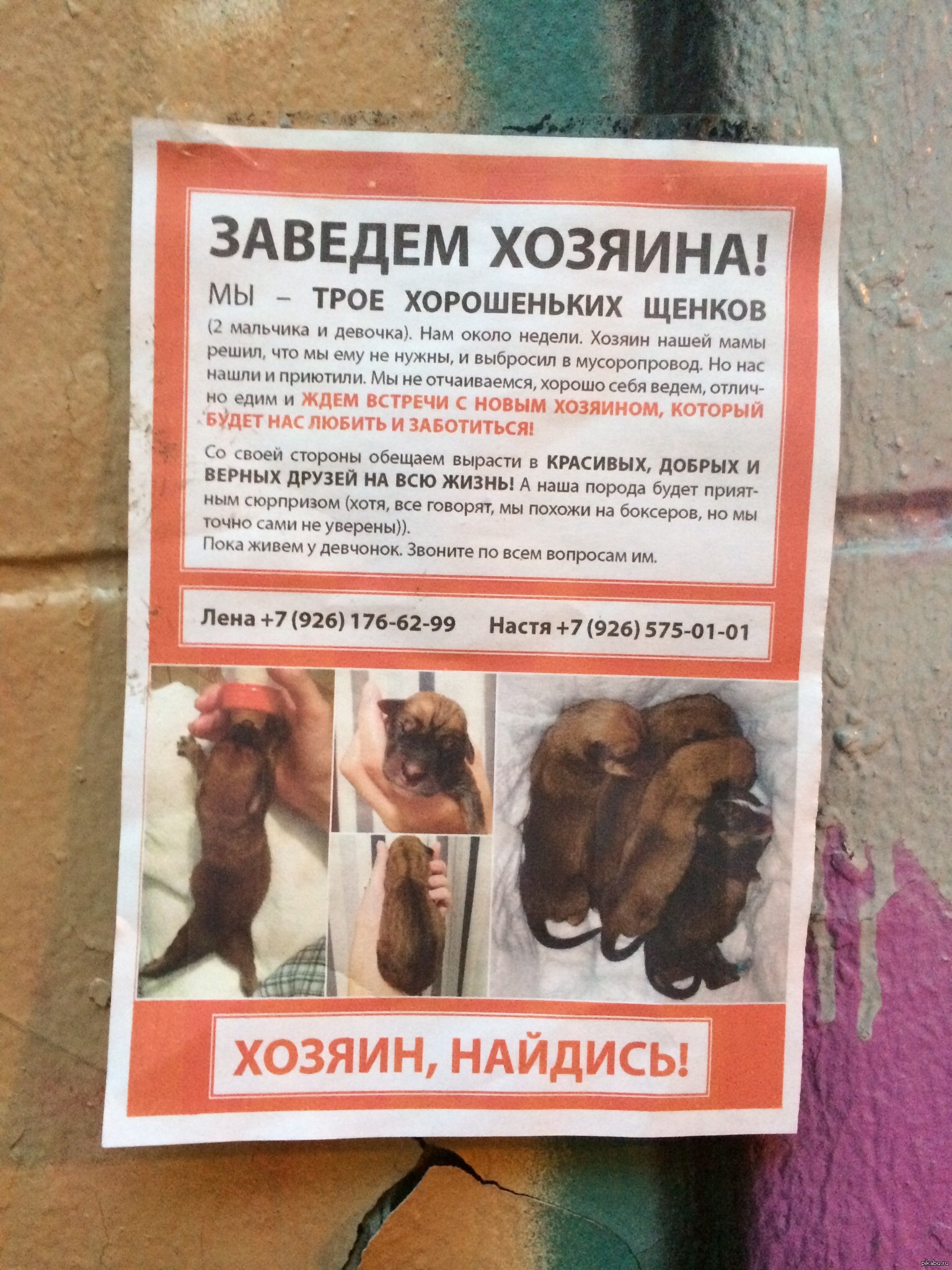 16 kyparu Добра пост 11 лет назад А вдруг (Москва)! Криво приклеено... На тапок... Москва Щенки Объявление Падонки