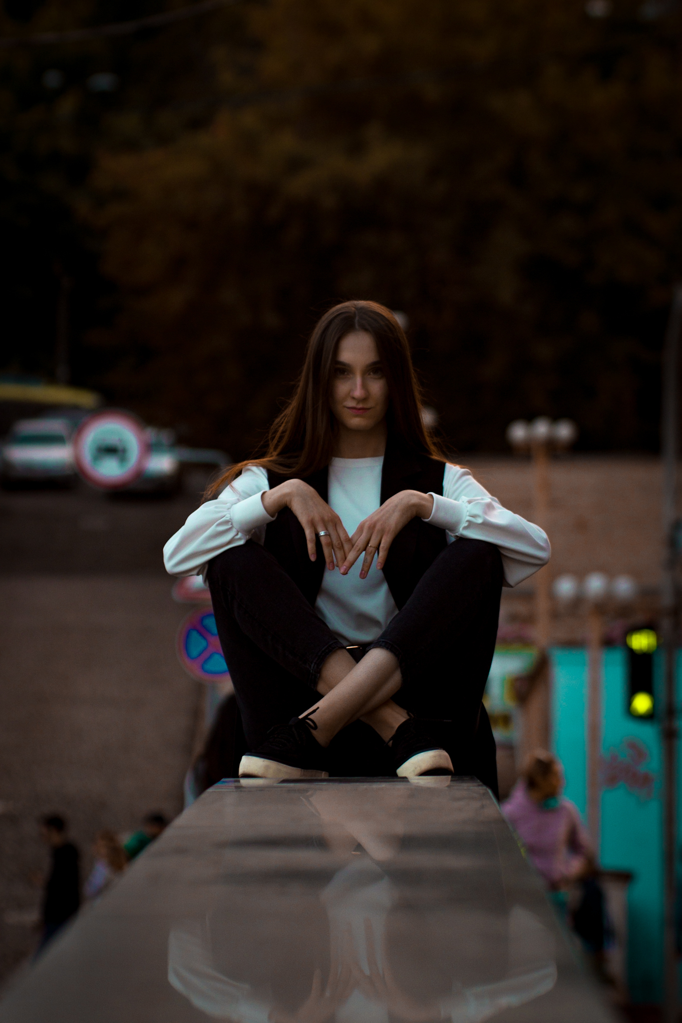 3. Пожалуй самый интересный, если бы не проблемы с экспозицией, то можно было бы смело добавлять в личное портфолио. Композиция, цвета, пойманный момент в мимике модели — гуд, мне нравится. Опять же, есть несколько технических моментов, типа как ушедший не туда фокус, что в данном случае не критично, ну и совсем мелкие косяки, типа подзаваленого (как мне кажется, может это второй бокал вина во мне шалит) горизонта и (может быть, тут лучше бы было прям серию снятую с этого ракурса сравнивать) не совсем удачно срезанной головы в отражении, но это тоже скорее придирка, чем реальный косяк.
