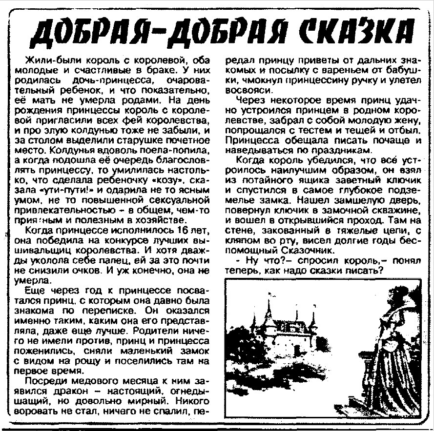 Резюмируем - чтобы в королевстве жили долго и счастливо, сказочников следует держать в цепях, в подземелье, с кляпом во рту.