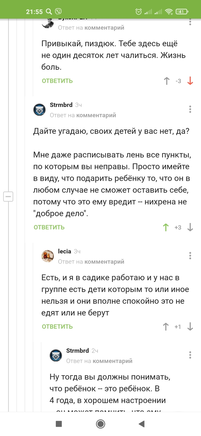 Зашел разговор про подарки в виде вкусняшек чужим детям. Мнение одной мамы ниже: