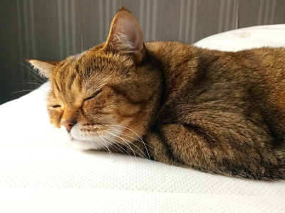За 12 лет не начала, думаю, уже и не начнёт... К тому же, она на постоянке с мамой живёт (на маме тоже не спит), но рядом на огромной подушке - милое дело)