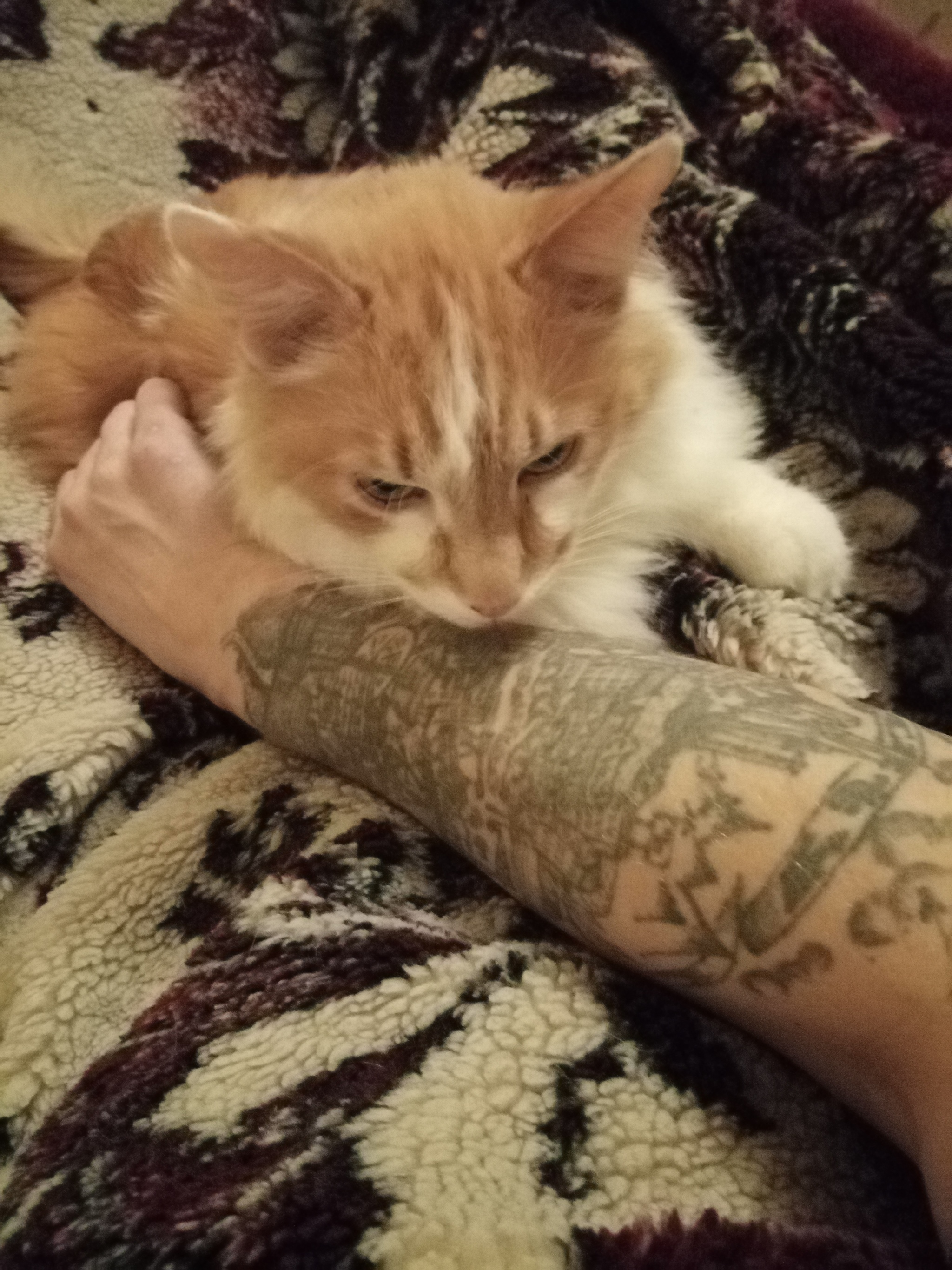А, делать все равно нечего) валяюсь с кошей в постели)