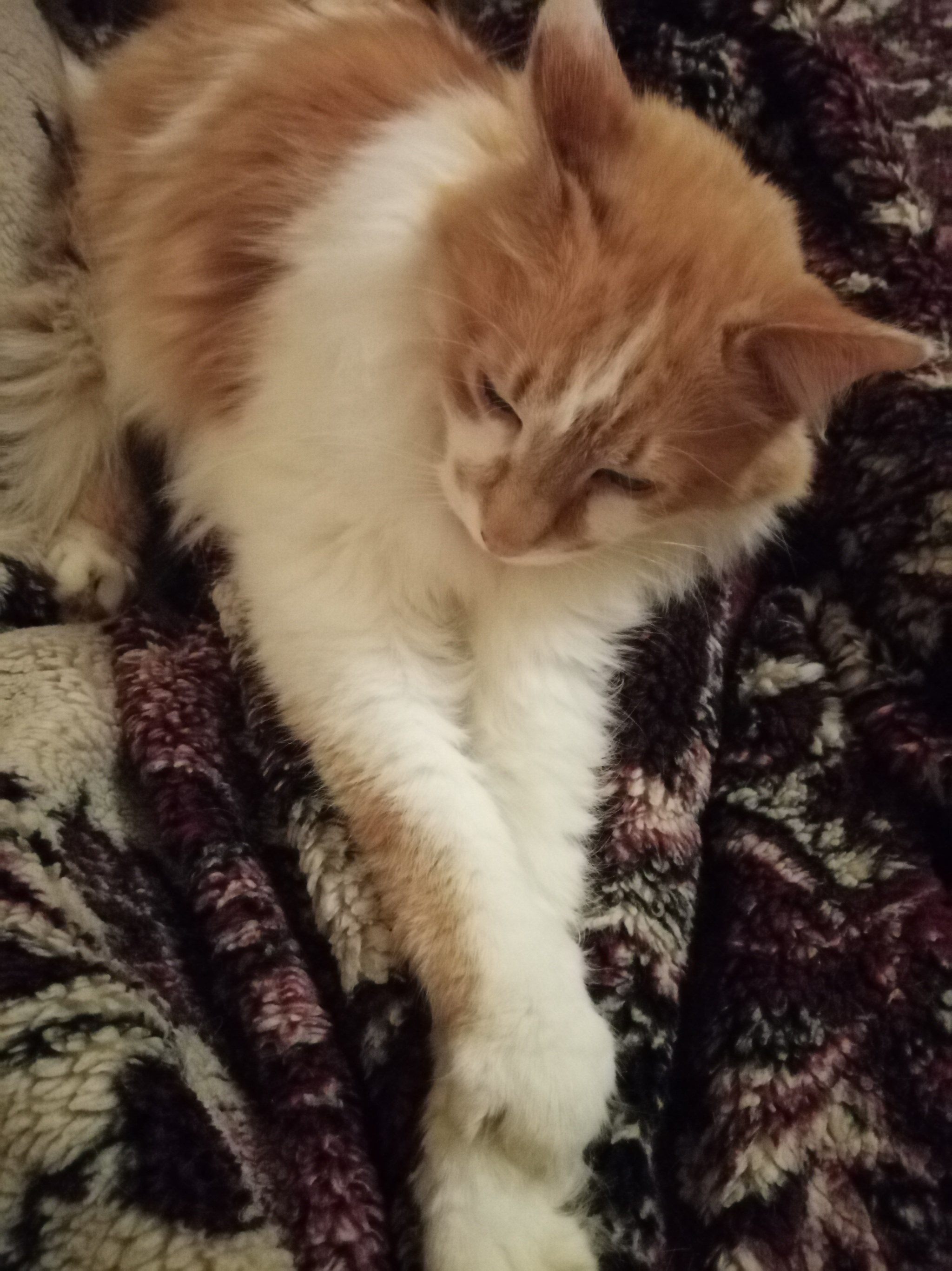 Спмт сверху и постоянно или лапами по почкам или под дых. Или вообще - по стальным топчется... Откормил на свою голову😅