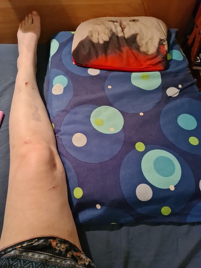 то за два синяка на голени, ранка ниже синяков и дырка чуть ниже колена?! 0_0
