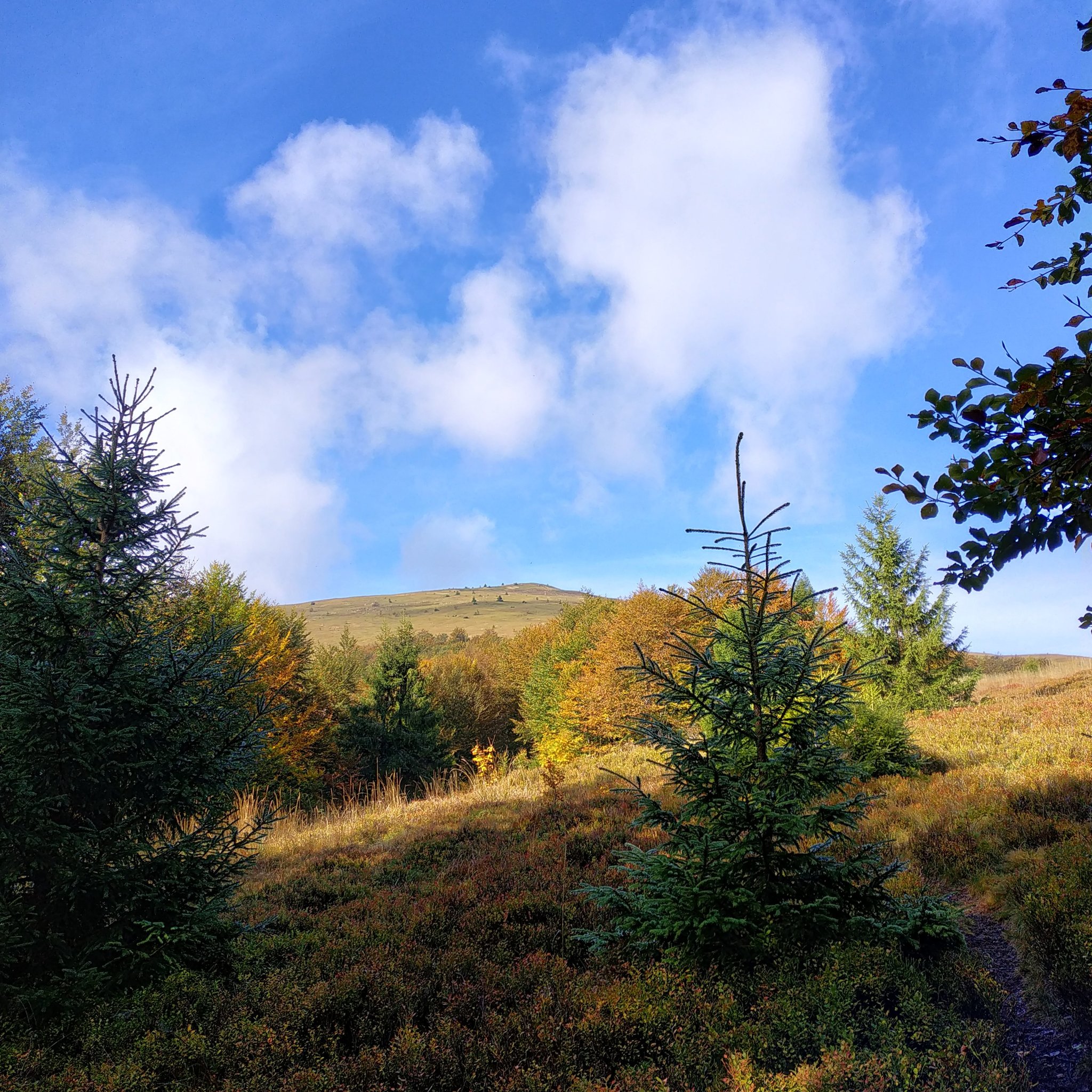 Утром стартовал от водопада Шипот и иду куда глаза глядят. Пока вот направляюсь на вот ту вершину.