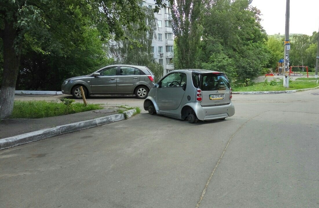 По итогу дня, в Киеве сняли диски у 4 машин только в этом районе, так что радовался не только я один. Удивило то, что при этом стоящие в 5 метрах Discovery и BMW не пострадали, видимо, кто-то переоценил ценность смартовских колёс и решил по быстрому сколотить состояние.