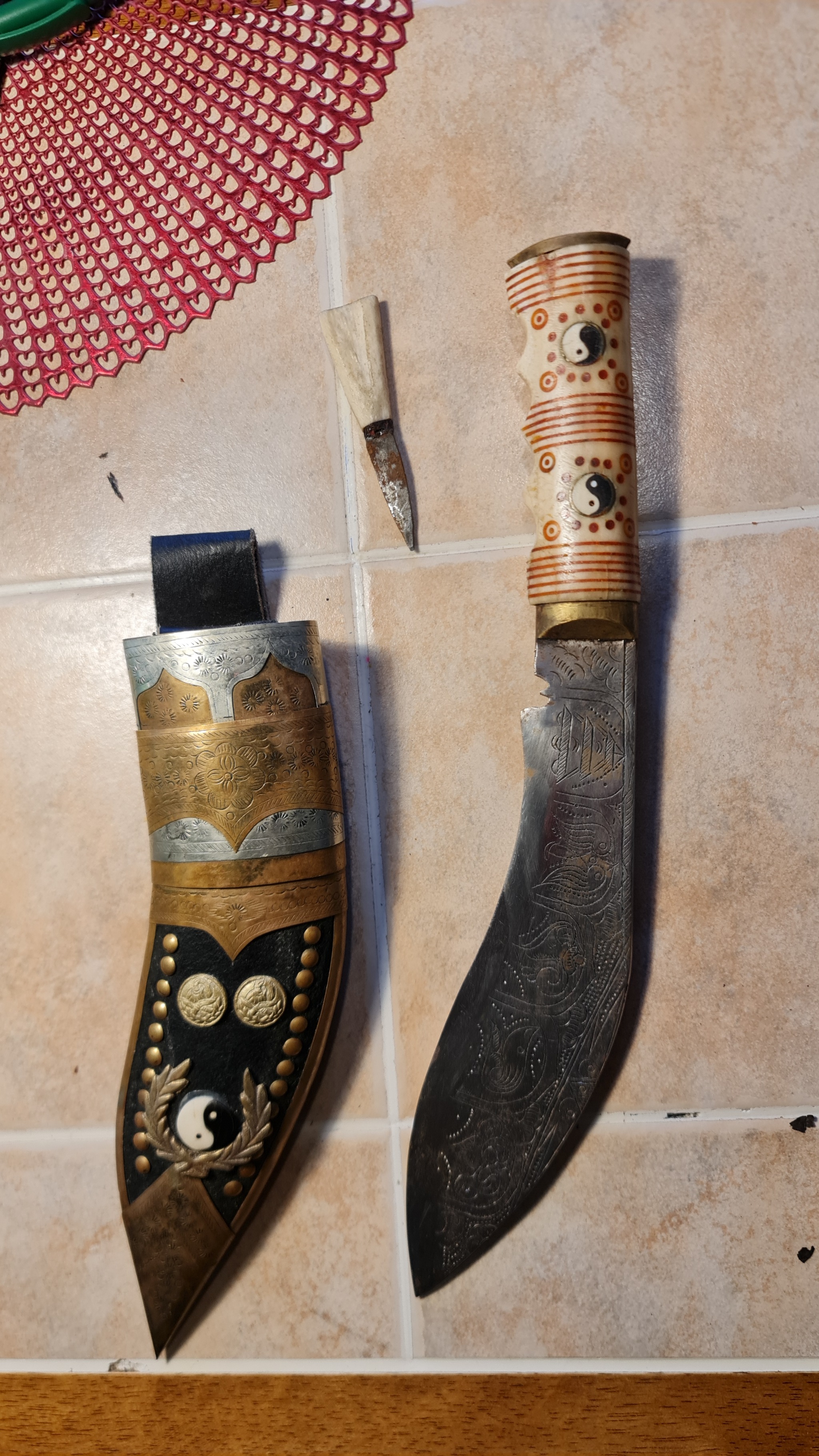 1. Нож кукри, больше ничего про него не нашел, интересует ценность и где лучше подобные вещи попробовать продать. Заранее благодарю)
