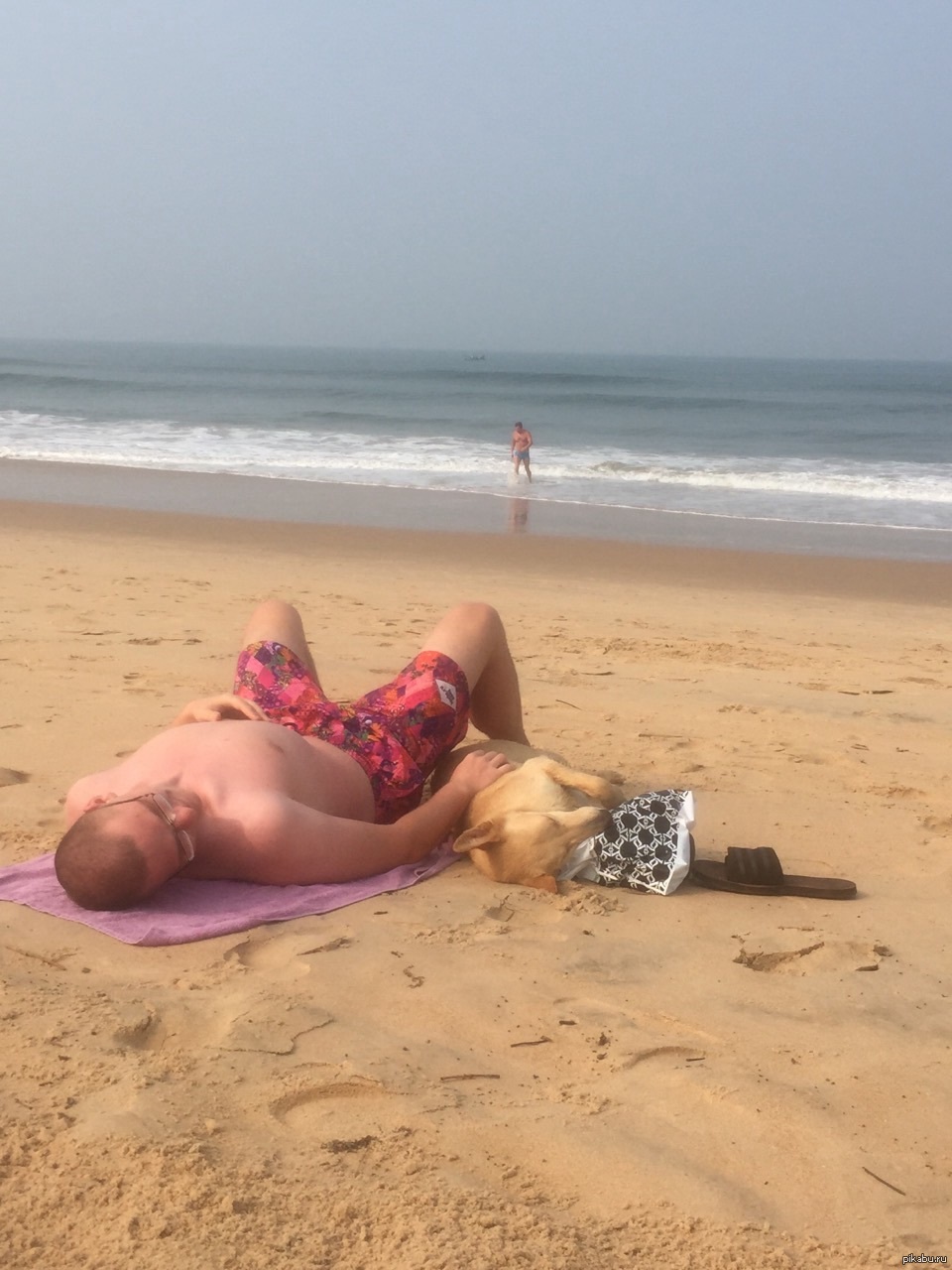12 Pida2 Доброта 10 лет назад В Гоа местные не особо любят собакенов. А этот чувак подвинулся и поделился с незнакомым псом полотенчиком. [моё] Доброта Собака Человек