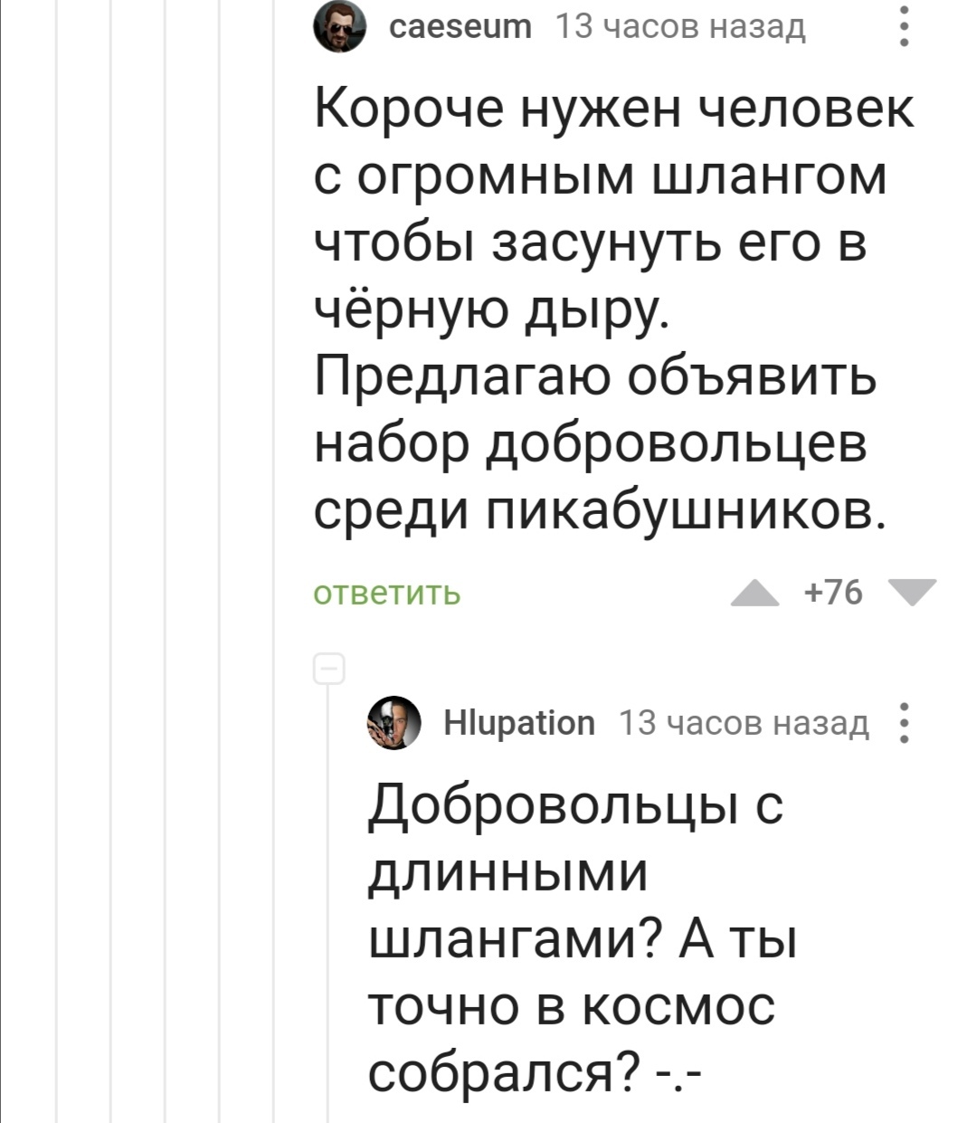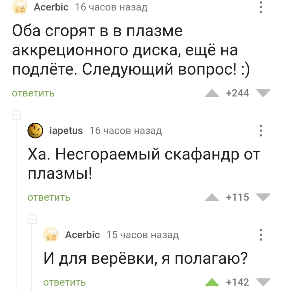 38 Pensive.horse Добровольцы с длинным шлангом, фьють! 3 года назад #comment_244386745 Комментарии на Пикабу Черная дыра Космос Добровольцы Шланг Длиннопост Скриншот 1 1 Ещё 0