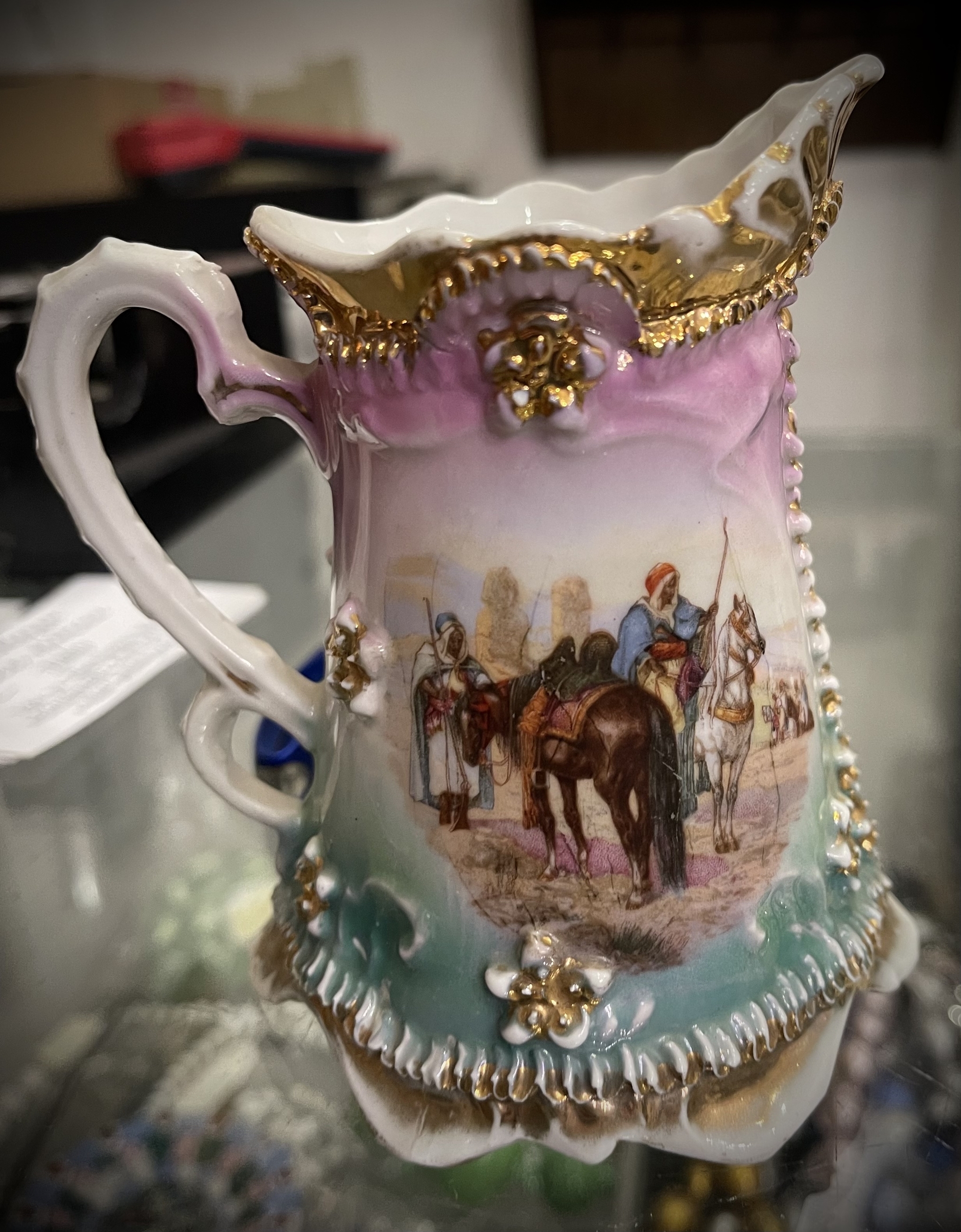 Если это привезено из Морокко, Эмиратов, Египта и т.д. (а есть подозрение, что именно из того региона) - то это не антиквариат. Просто чайный комплект с восточного базара.