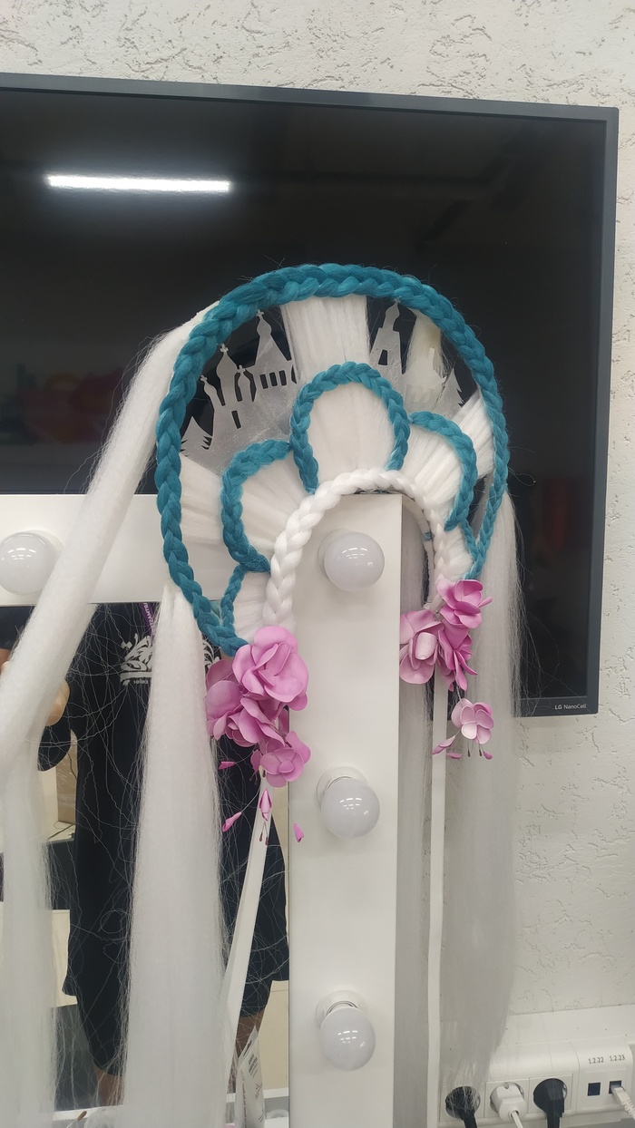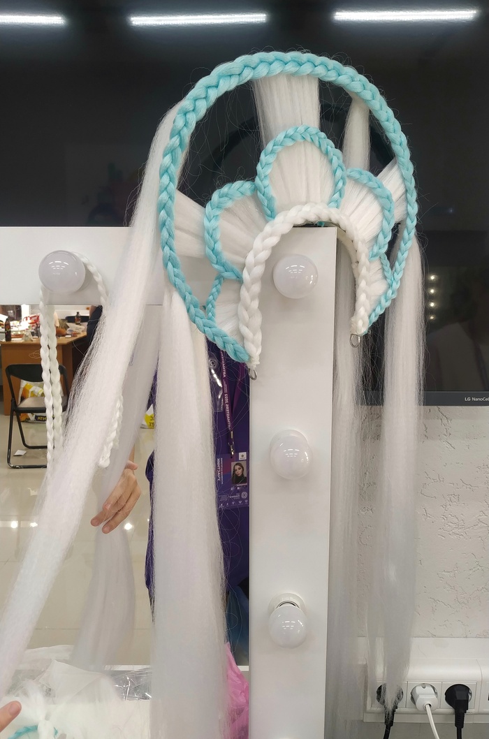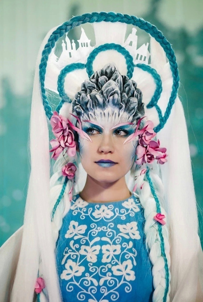 Кокошник. Косы и свисающие волосы - отсылка к Алтайским рекам и водопадам
