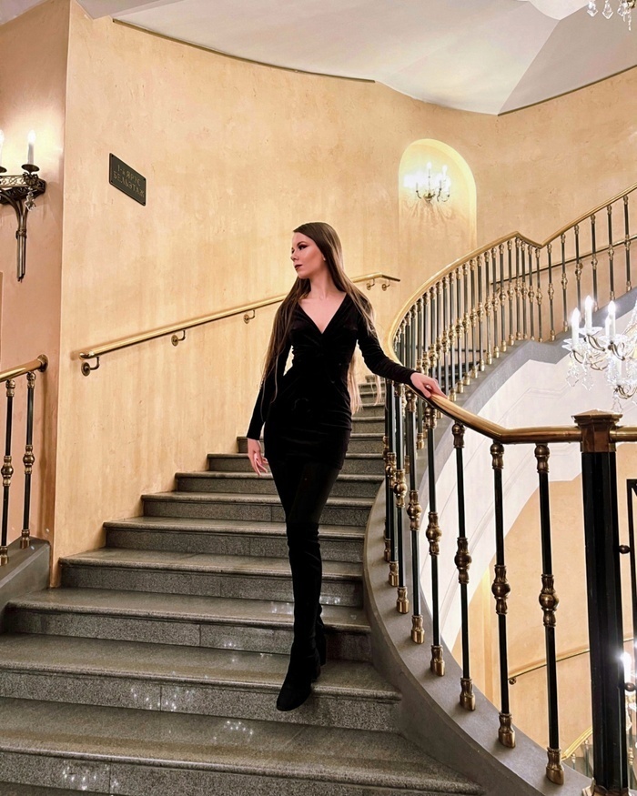 Поэтому, в моём образе есть и горы с имитацией алтайских рек, и православные силуэты деревеньки сзади в кокошнике. И цветы, вдохновлённые пейзажами Алтая.