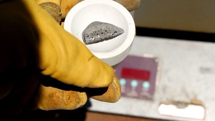 Этот кусочек нужно прокалить, чтобы примеси сгорели.