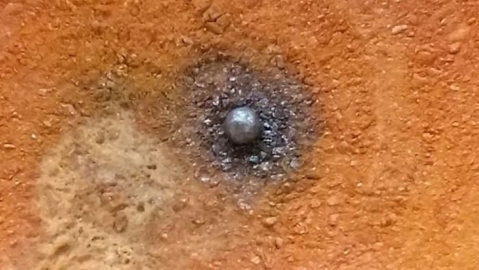 На дне стакана из печи остаётся крошечный шарик из сплава металлов с очень высокой температурой плавления, то есть из металлов платиновой группы.