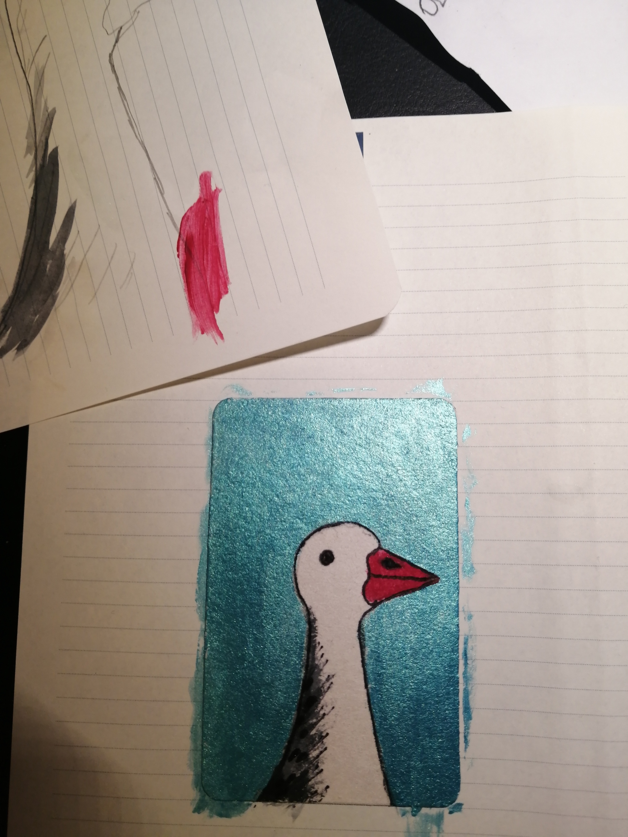 Гусь выкладывался не с целью заработать) просто похвастаться, что у неë руки гораздо прямее моих)). Как писал ранее Гусь был нарисован в подарок брату на новый год и он не продаётся)))