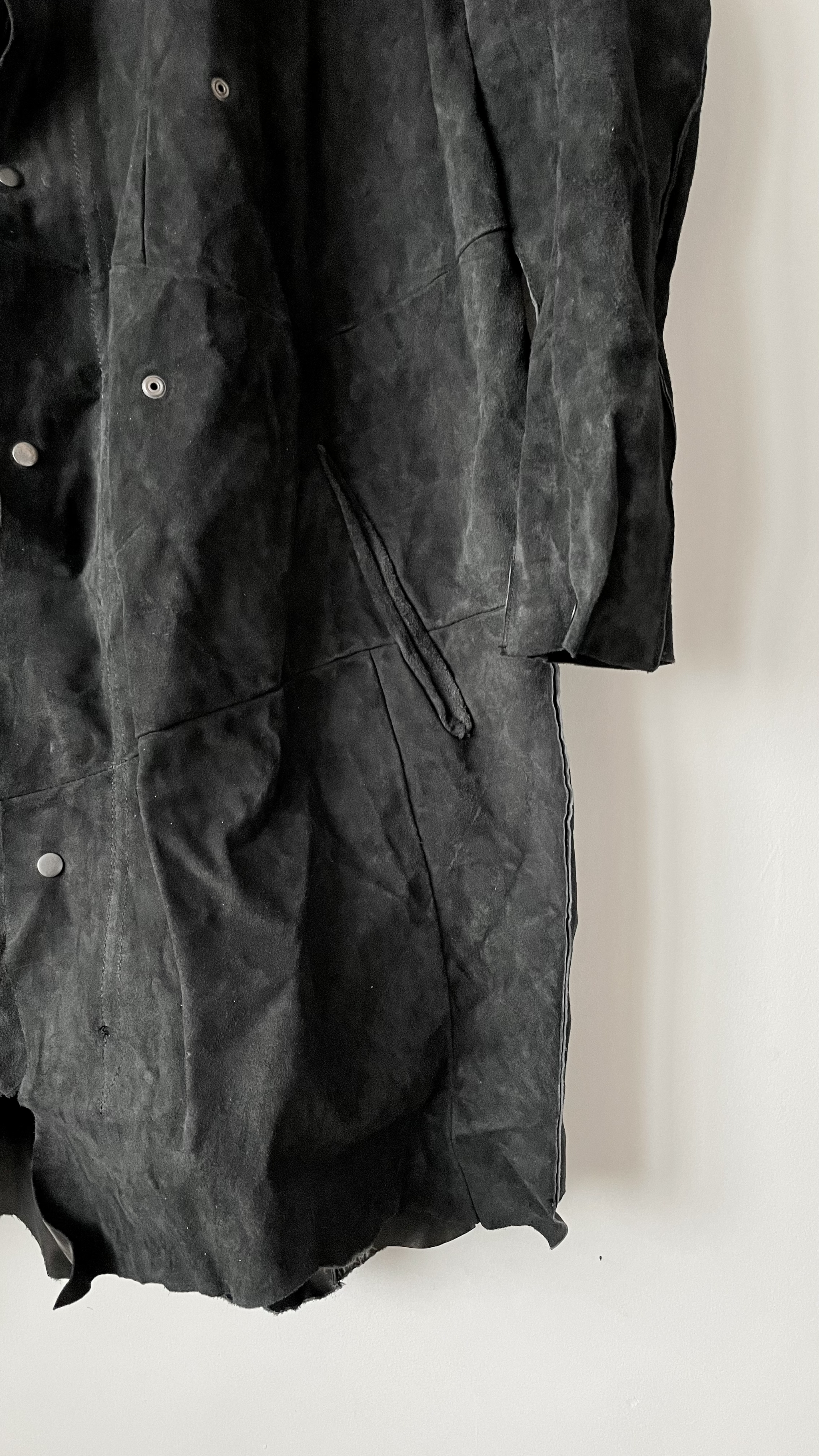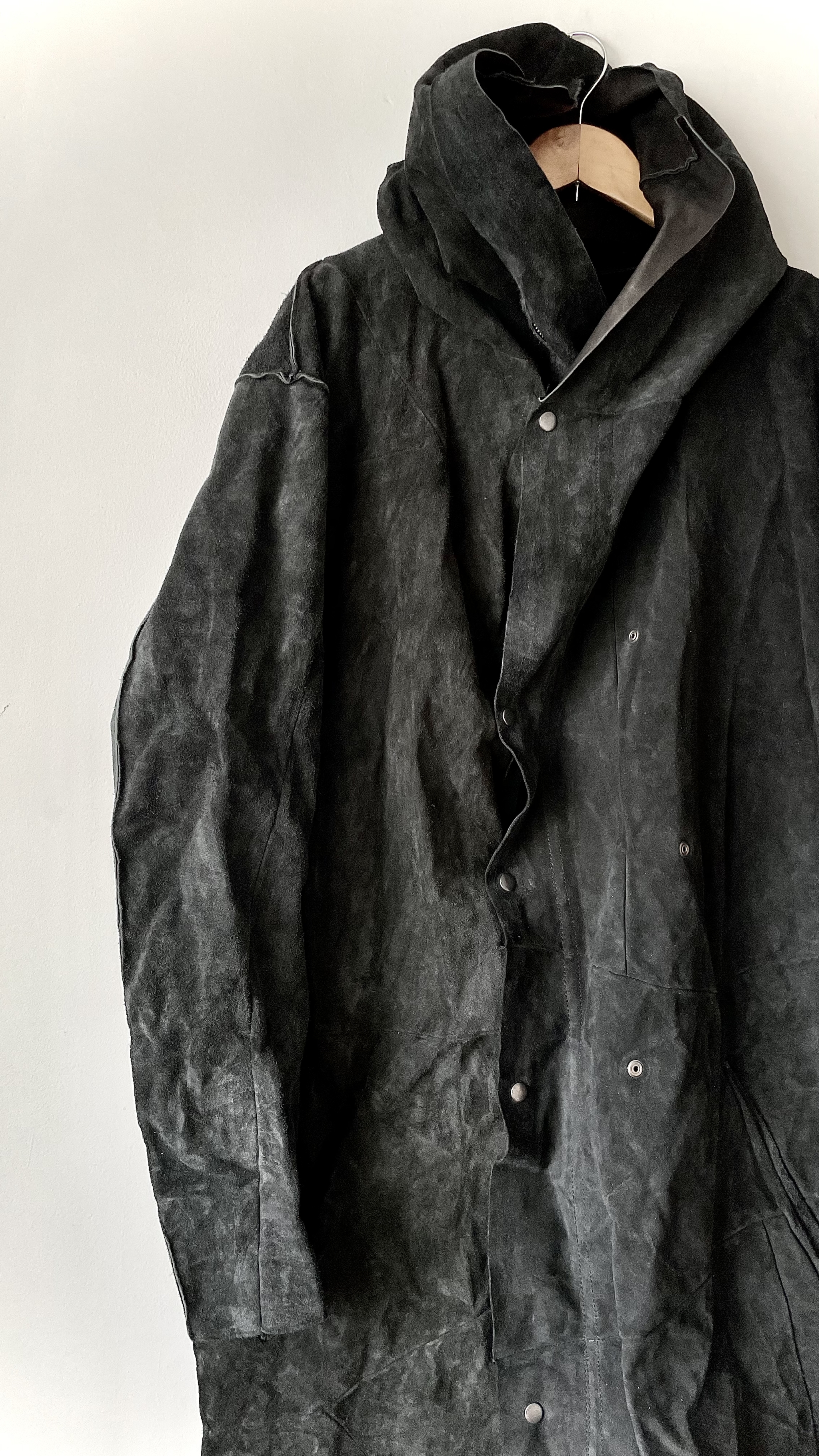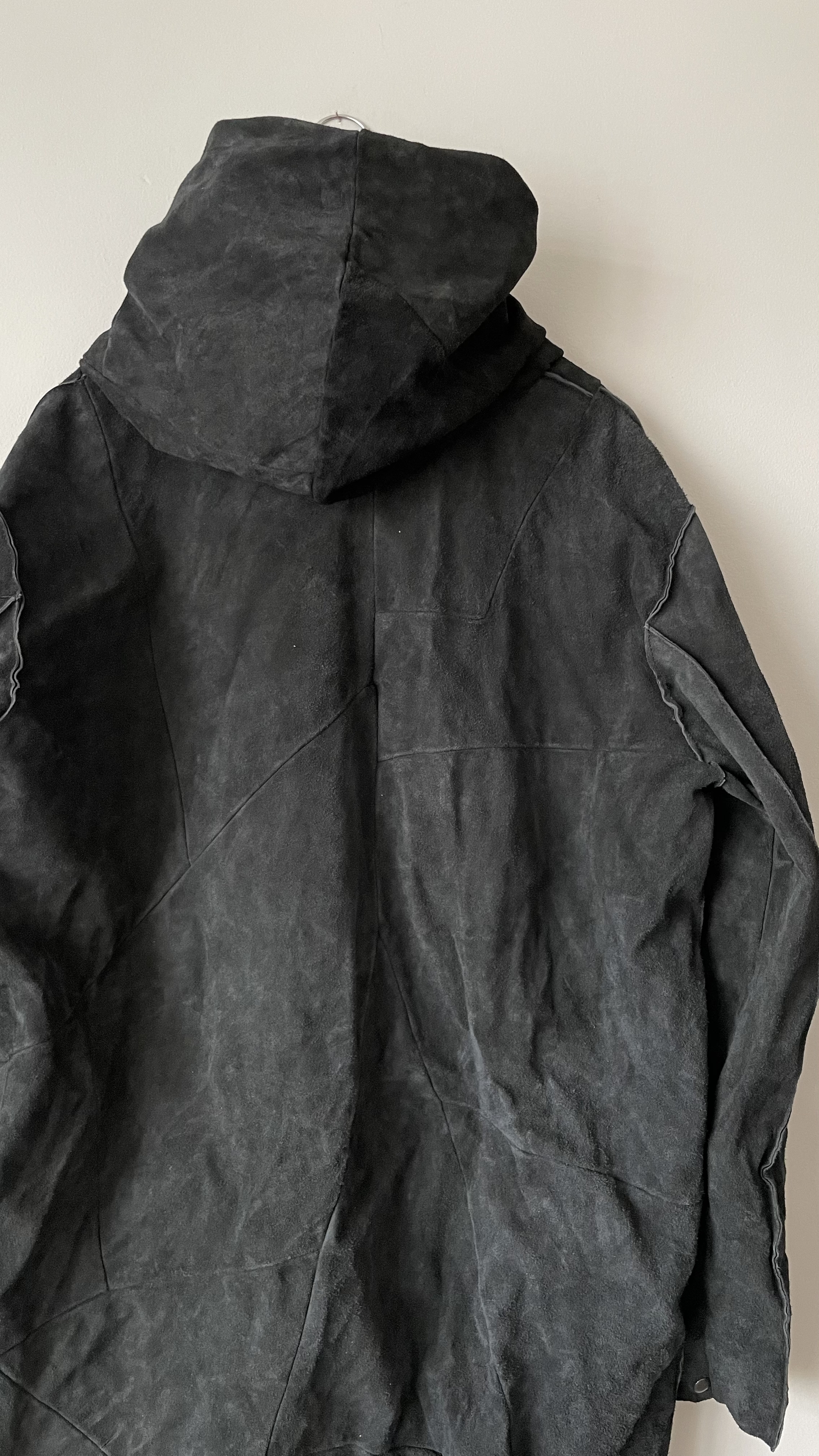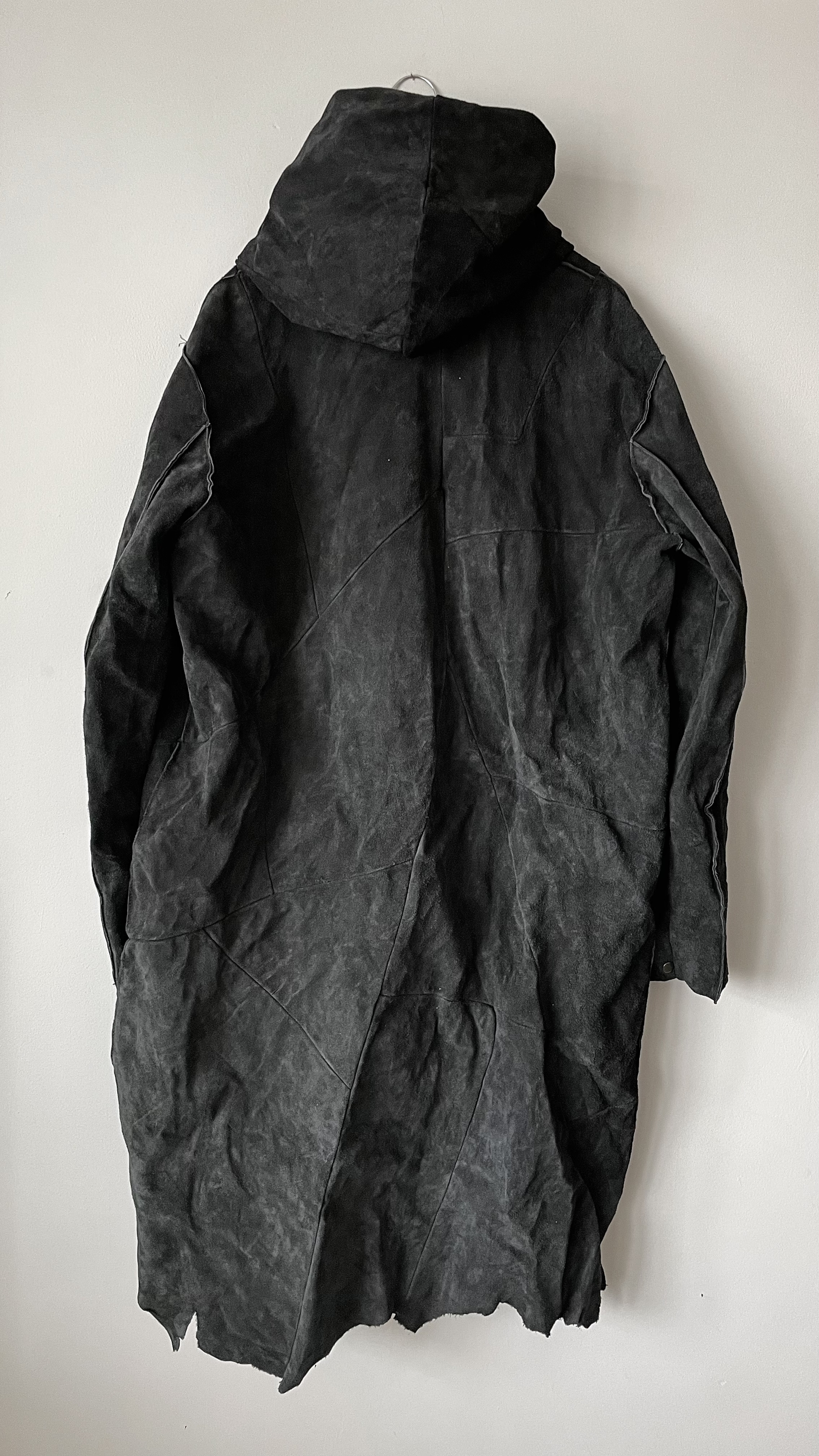 Асимметричный крой деталей и сборка в пэчворк стиле швами наружу на внешней стороне.