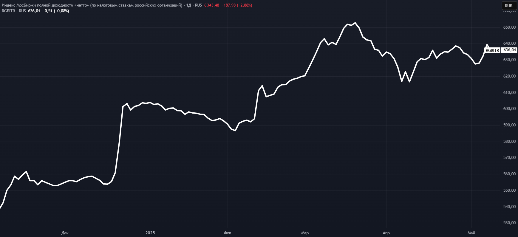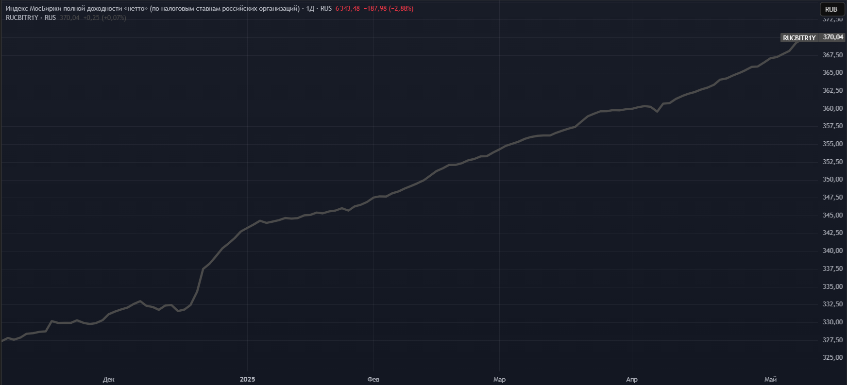 Индекс полной доходности государственных облигаций — RGBITR является ориентиром, показывающим доходность по этому типу активов. В расчет данного индекса входят, как короткие, так и длинные выпуски + учитываются выплачиваемые купоны.