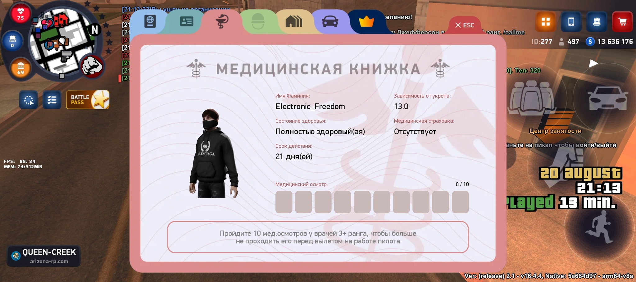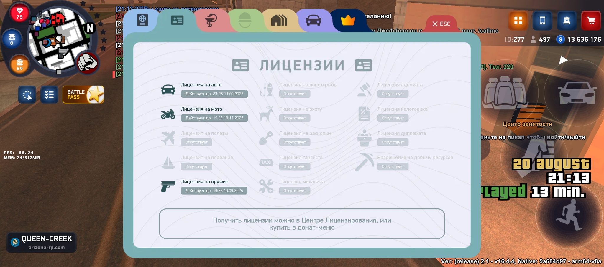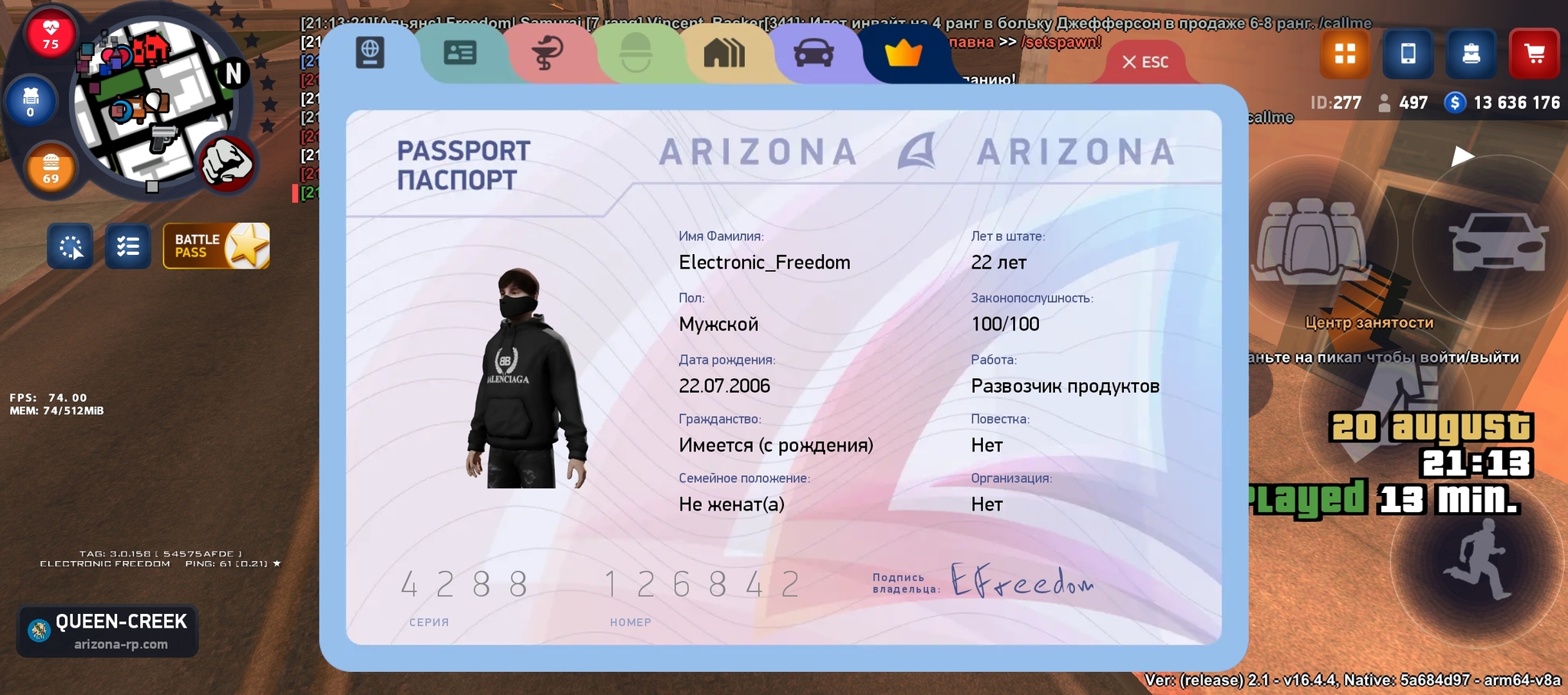 user11094749 Документы 4 месяца назад паспорт+тайм мед карта + тайм лицензии+тайм статс+тайм [моё] Samp Аризона Ещё 0