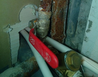 Вот этот кран я забыла перекрыть. И трубы которые идут к водонагревателю сталиипокрываться конденсатом.