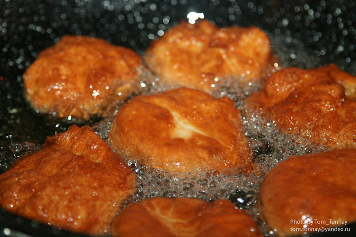 Дальнейший процесс прост, как пара пальцев. Берём наши заготовки, кидаем в казан и следим, чтобы они обжаривались равномерно, как только наши бледные, плоские кругляши превращаются в золотистые и аппетитные шарики - они готовы, вынимаем, сбрасываем на пергамент, чтобы отекли и подаём к столу, как остынут до приемлемой температуры.