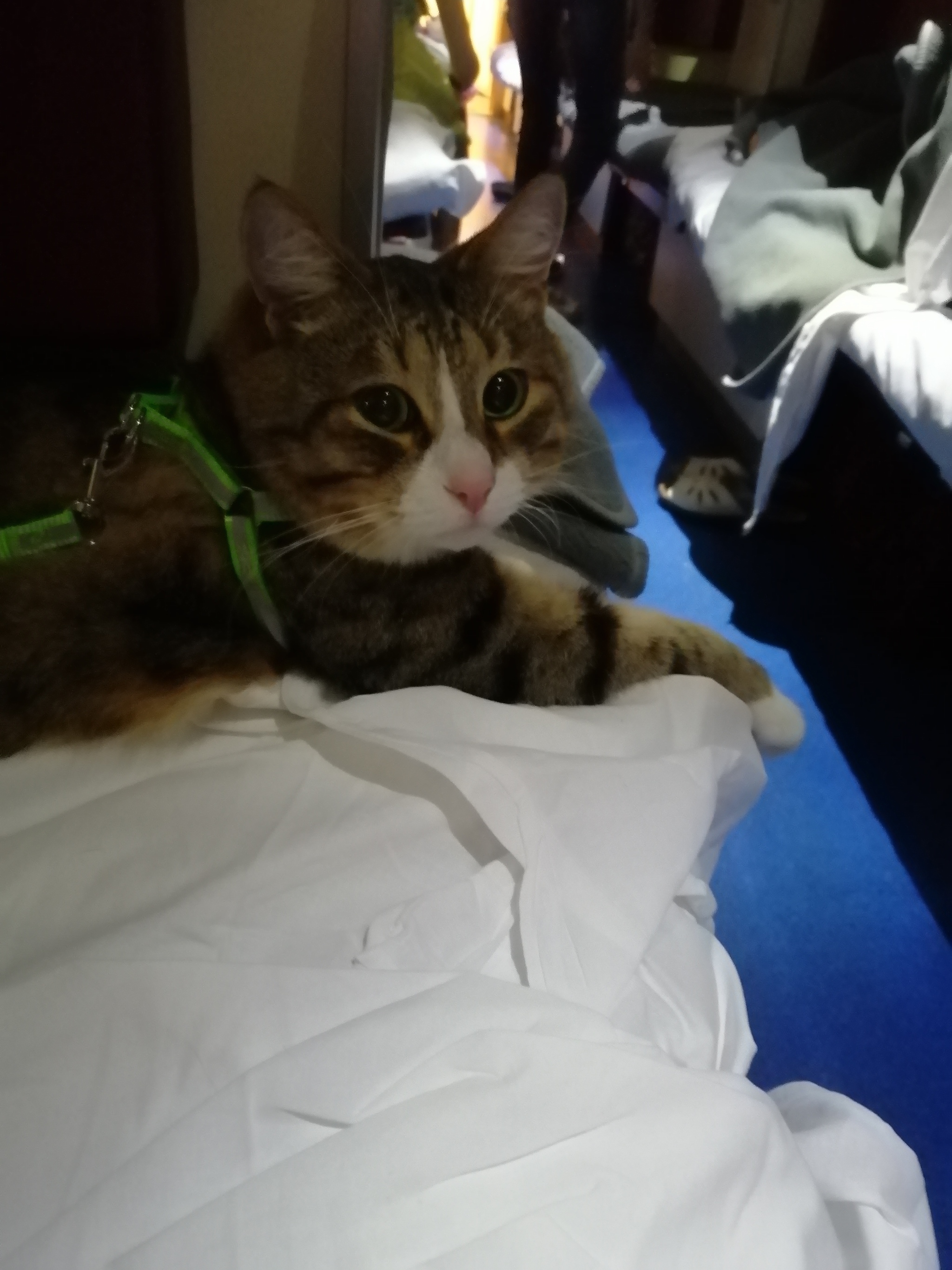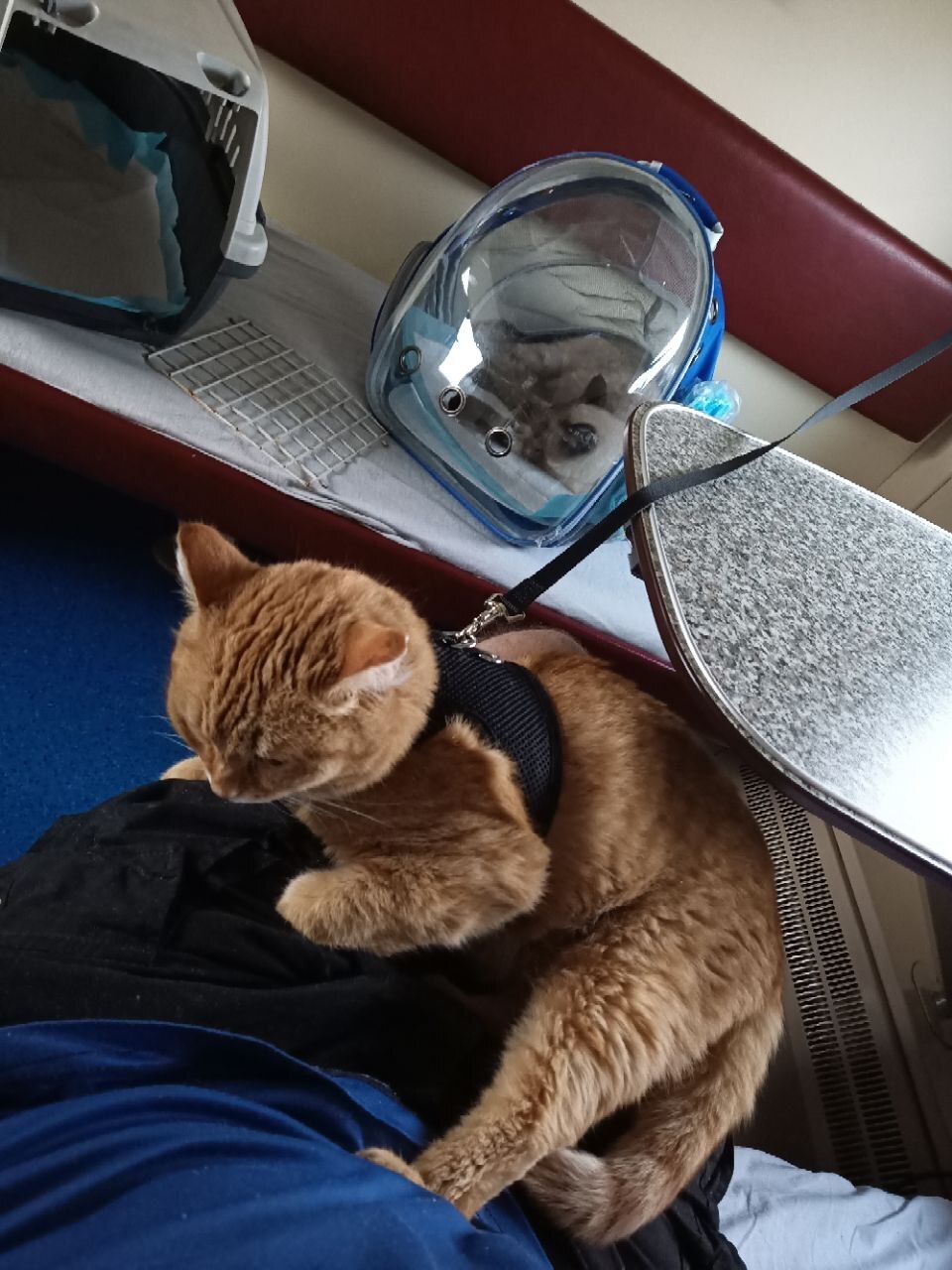 На один отдельный "звериный билет" можно везти двух кошек. Технически, они должны находиться на полке пассажира в переноске или пристёгнутые, но я удачно рассчитал и почти всю дорогу из Тюмени в Симферополь вёз кошек в пустом плацкартном "купе", поэтому ставил переноски с ними на соседнюю полку.