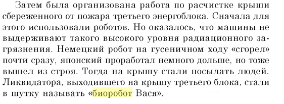 я в кавычки завернул для лучшего понимания.. А вообще, биороботы еще потому, что эти ребята заменили настоящих роботов, которые очень быстро вышли из строя из-за высокого уровня радиации.