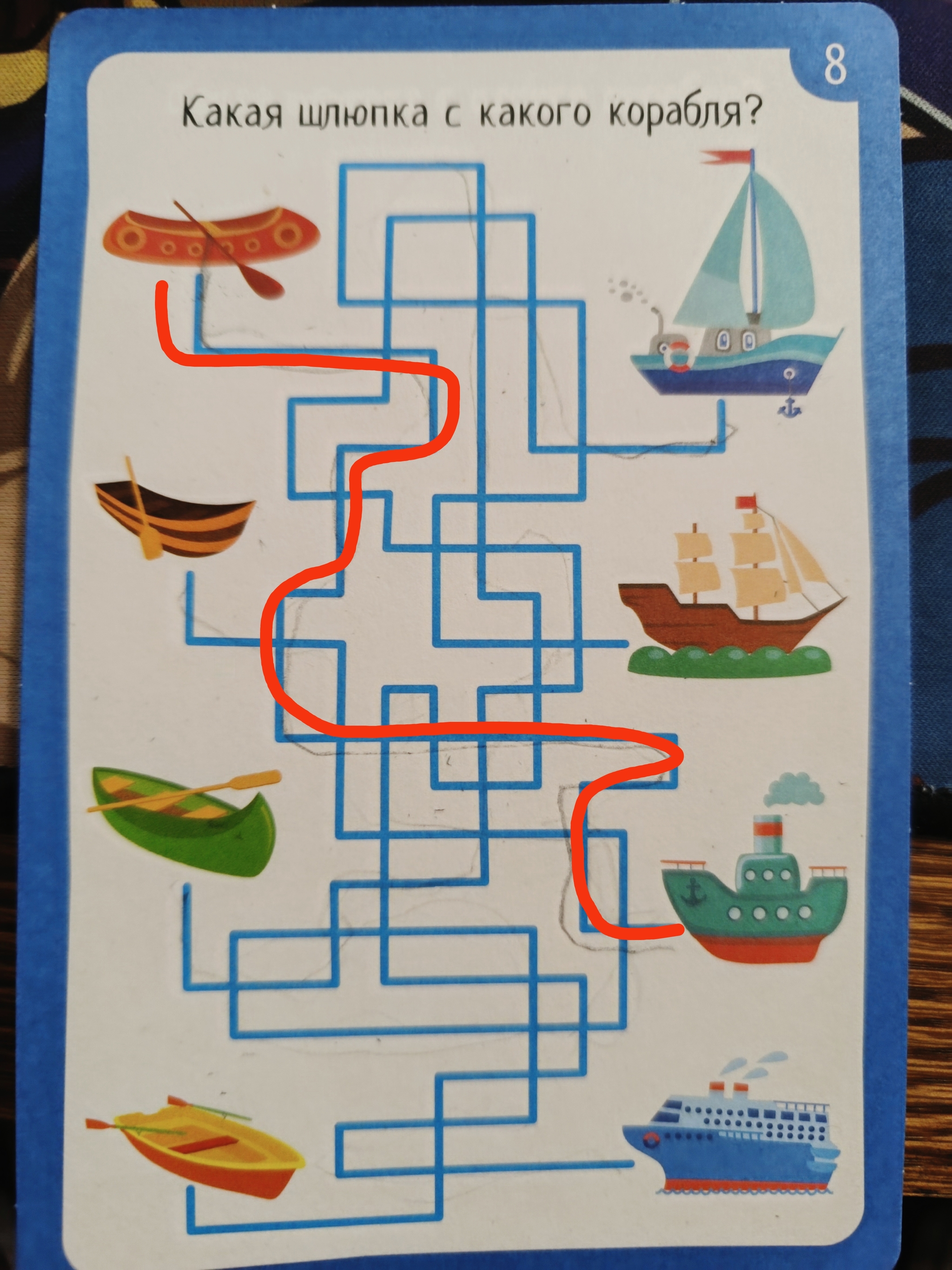 Какая шлюпка с какого корабля? Мой 6 летний сын сидел себе решал головоломку. Сказал, что ребята, которые это придумали, не дружат с головой. И знаете, я считаю, что он прав!!