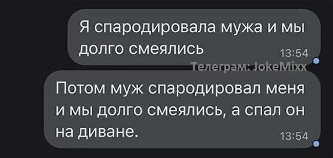 1503 Papey.Govna Юмор Долго смеялись 2 года назад Отсюда - https://t.me/memes_street/440 Юмор Переписка Муж Жена Скриншот Пародия 40 29 4 Ещё 0