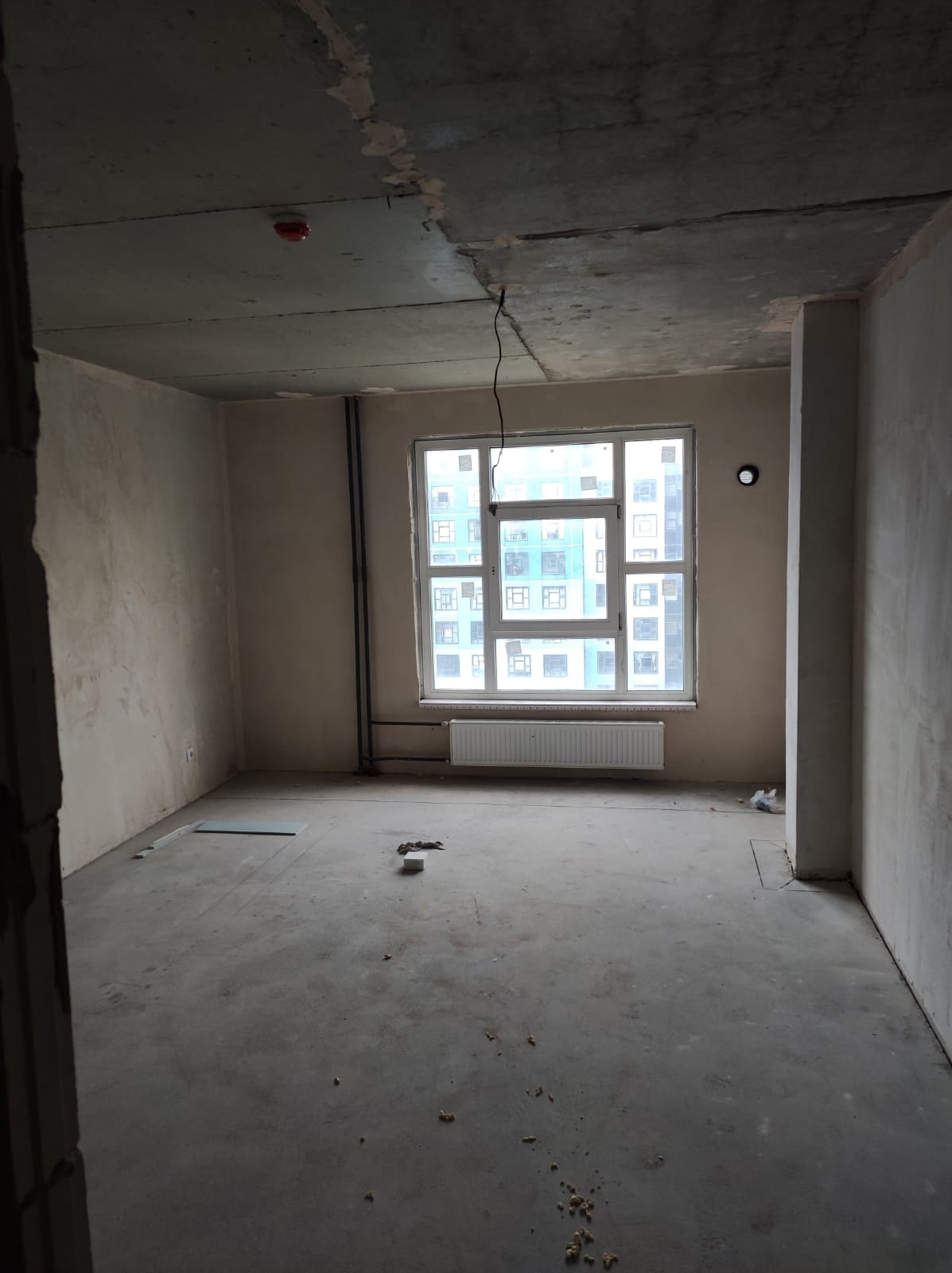 Но ее нет. На полу стяжка, стены - газобетон, в санузле только стояк и венткороб. А, ну да, с потолка свисают кабели со сломанными патронами. И сейчас застройщик предлагает нам подписать акт приемки квартиры без отделки.