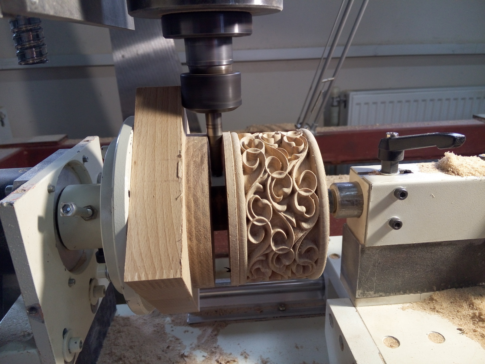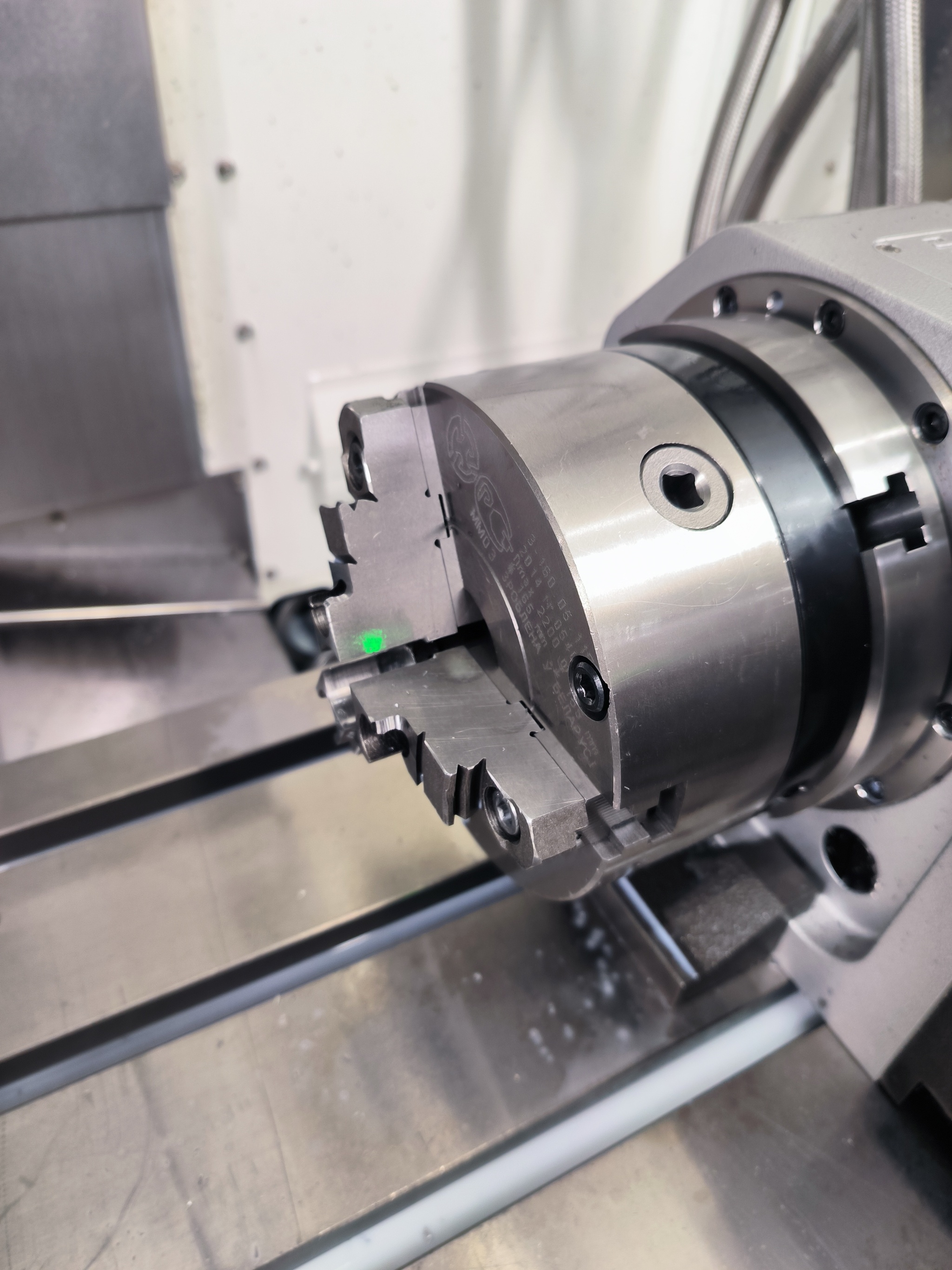 Не результат токарной операции, а то как зажали цилиндрическую заготовку в поворотной оси четырехкоординатного фрезерного станка.