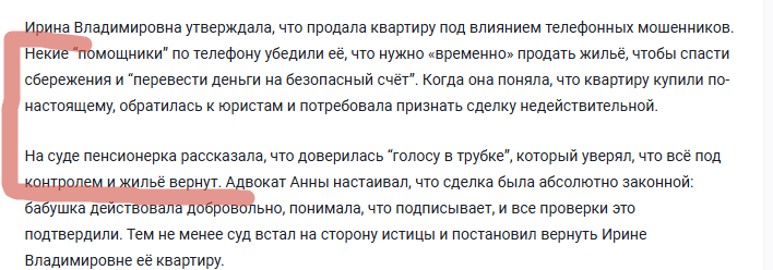 Прочитал коменты: Все бросились ломать копья защищая покупателя. Дело нужное. Но давайте защитим и бабку тоже. В чем защита. Бабуля пришла СФ, показала что она не шиза, выписалась и прописалась в новом жилье, что ее новое жилье соответствует нормам, что хозяин (брат, дети, подруги, шикарный дом престарелых с джакузи) готовы ее принять. Получила справку от СФ и продавай на здоровье. Бабка не на улице. А деньги она может тратить как захочет. Ее дело. Сделка прошла с одобрения гос органа, к покупателю претензий нет. Ну теоретически в СФ могут быть преступники, но они могут быть везде. Даже Вы, уважаемый комментатор можете стать преступником. По слабости, из обстоятельств и т.д.