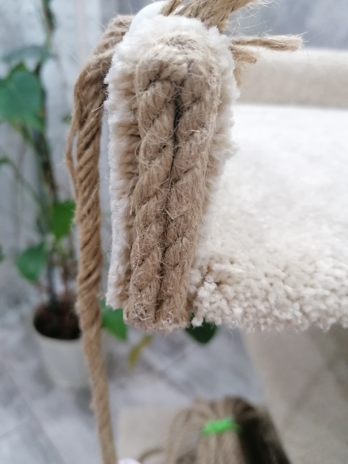 Дом делали из фанеры 8мм и эта сразу ошибка, нереально подобрать саморезы которые не будут пробивать фанеру на сквозь даже с учётом уголка. Самые маленькие саморезы которые нашёл 11мм, если бы предстояло снова делать дом выбрал бы 12мм фанеру. ЛДСП даже не рассматривали в первую очередь потому что дом получился бы тяжеленным хоть и собирать было бы проще, ну и дорогая ЛДСП ЕСЛИ её новую покупать. Для когтеточек использовали бумажные втулки из под клеёнки, была возможность взять на работе из отходов. Крепили когтеточками в торец саморезами на 50мм. Сверху когтеточки обматывали джутом, конец крепили мебельный степлером, потом намазывали втулку клеем пва, обматывали и второй конец опять прикрепляли степлером. Ширина домика 38см, длинна 76, высота каждого этажа 32см. Ширина и длинна получились такие из за габаритов стандартного листа фанеры 1550мм поделили на 4 части и оставили немного на запас. Высоту немного сократили, что бы конструкция не была слишком громоздкой. Фанеру обклеили ковролином, что бы коту мягче лежать было. Узнали что ковролин бывает как минимум 2 видов, у которого ворс петельками и есть ещё где эти петельки разрезаны. Взяли второй, что бы пушистый когтями не цеплялся и не разобрал дом. Да и помягче нам покозался ковролин с разрезанными петельками.