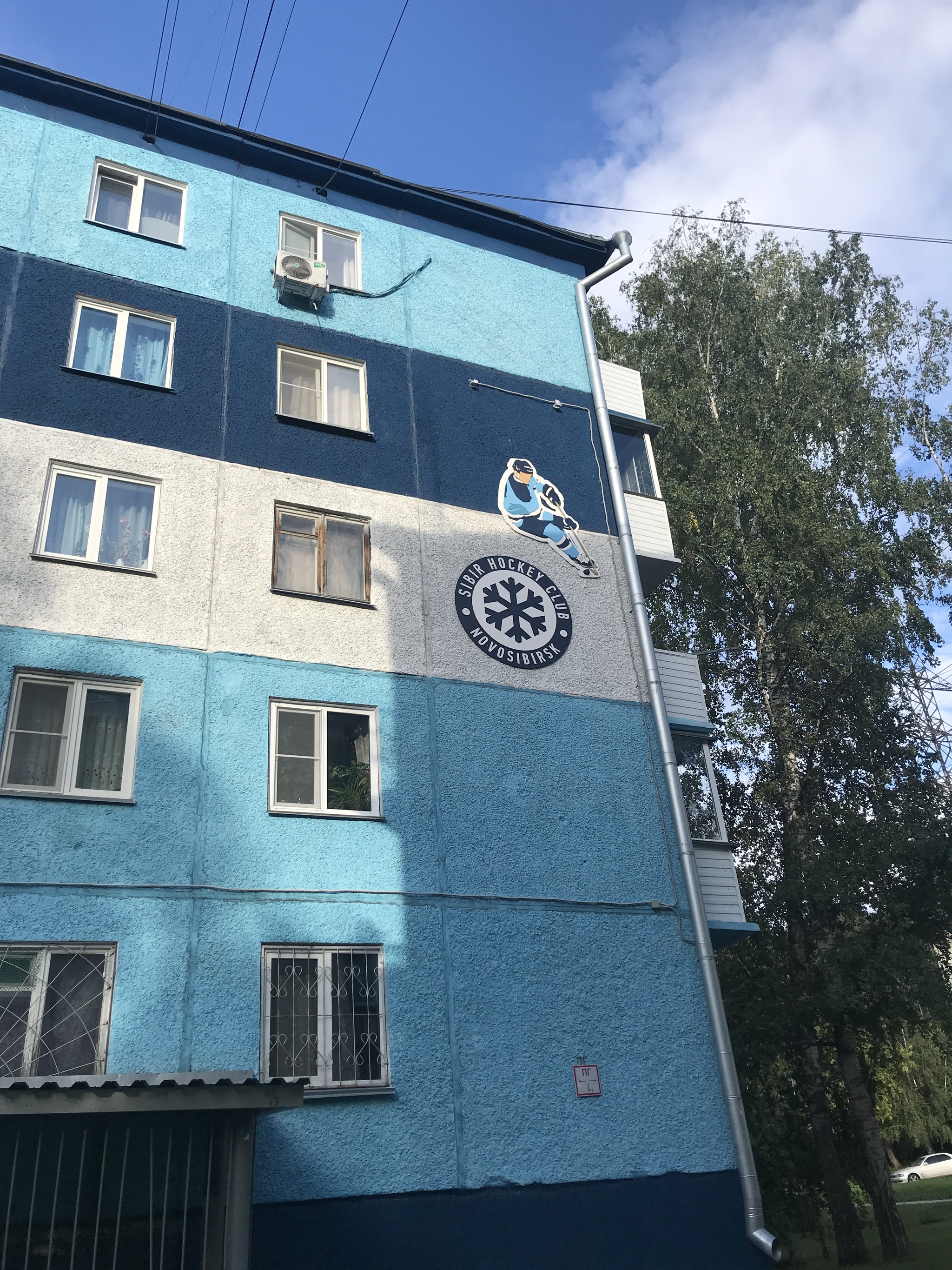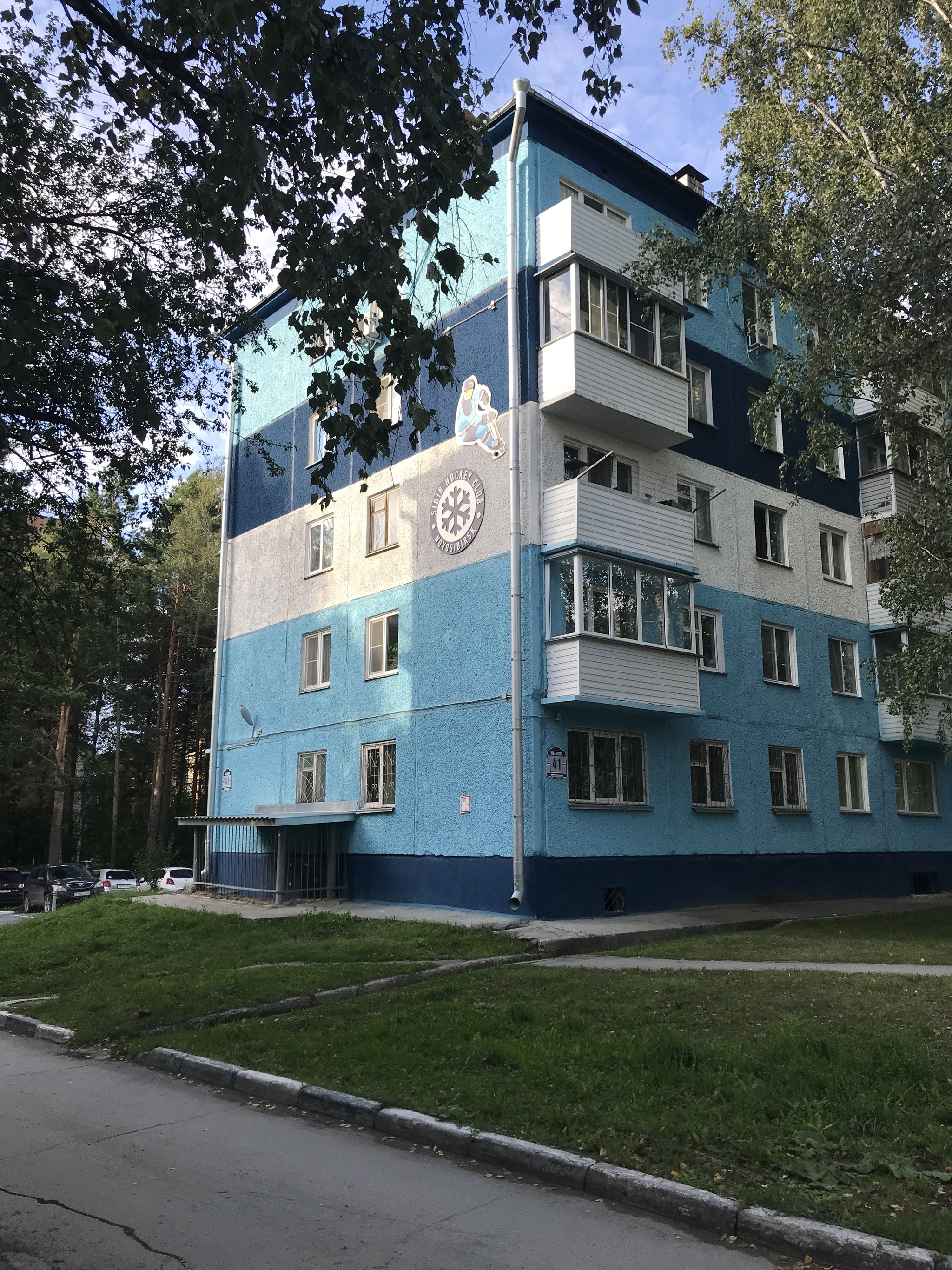 И самое забавное, что все началось с простой идеи фаната новосибирского хоккейного клуба, по совместительству, председателя совета дома. Именно он организовал масштабный ребрендинг здания в цветах любимой команды.