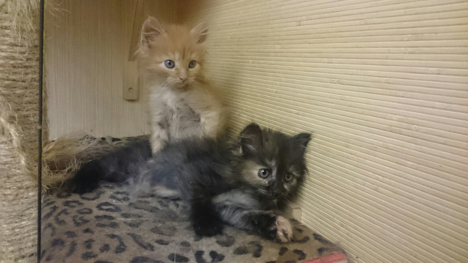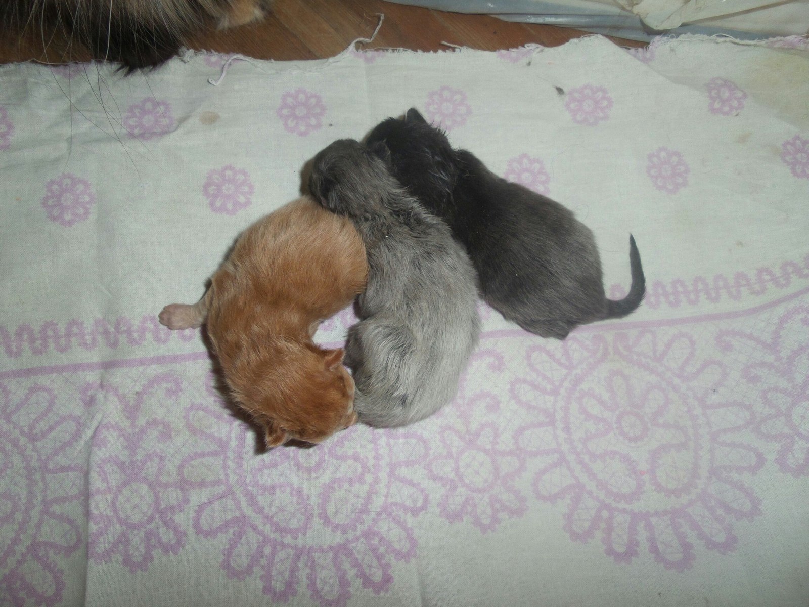 Рыжий мальчик. 1/4 генофонда дают полностью рыжий окрас. Короче весь в бабушку. Серая девочка. Самый редкий вариант окраса из возможных.