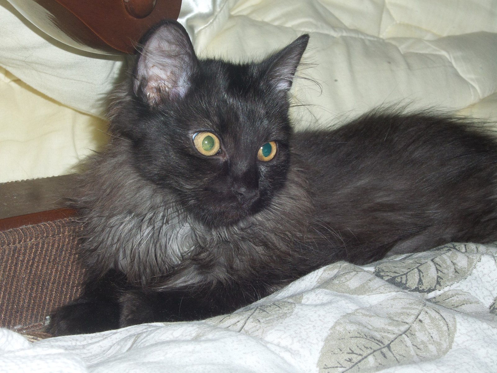 Про характер кошки сказать ничего особо не могу, она из приюта, уже с поломанной психикой. Всего боялась, потом пообвыклась, стала обычной домашней кошкой. Первый выводок.