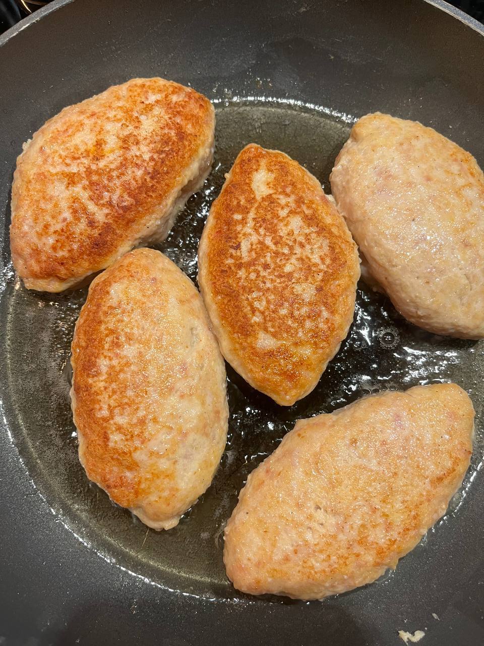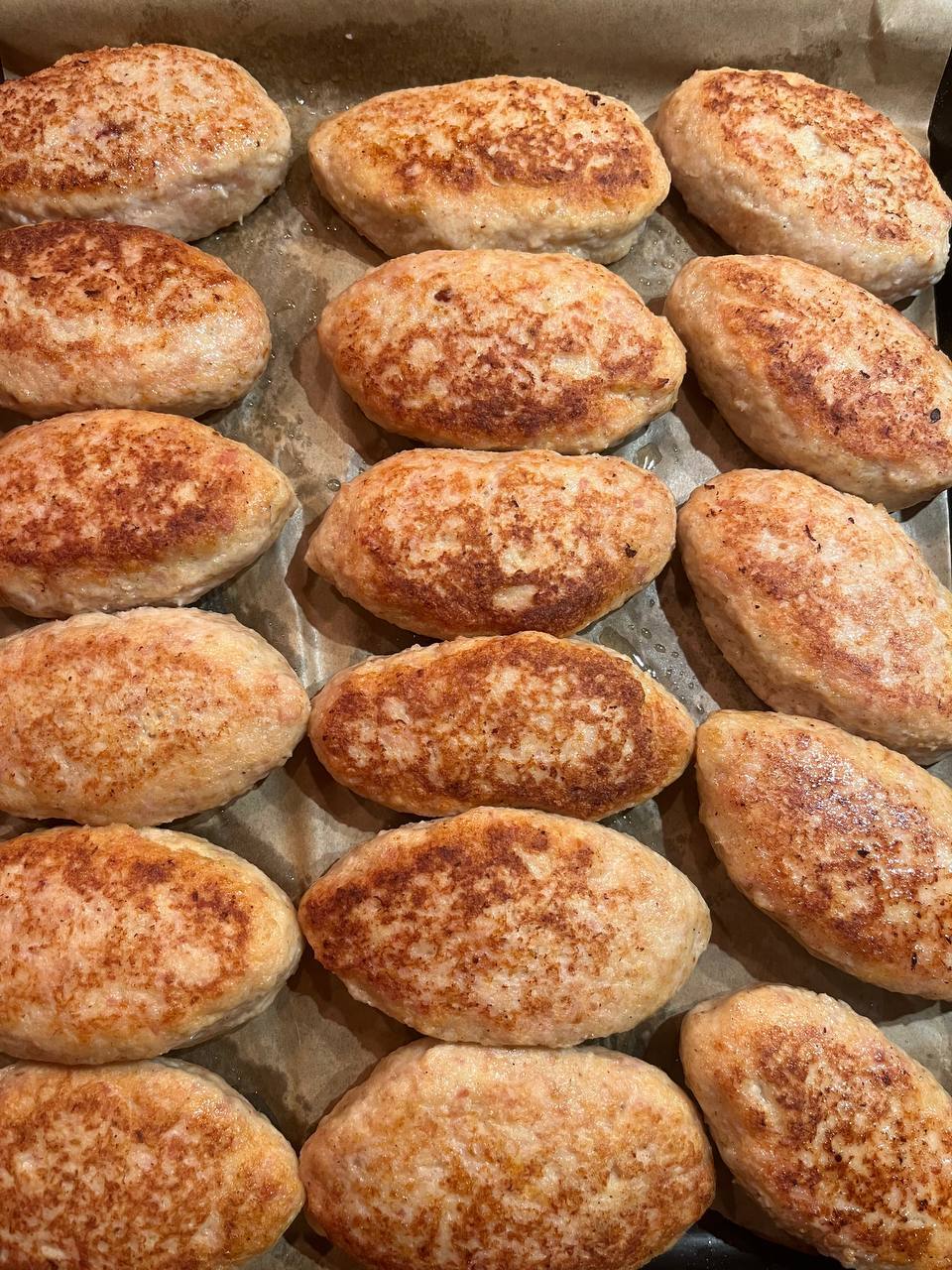 Жарим котлетки с двух сторон только до румяной корочки и убираем остывать на противень