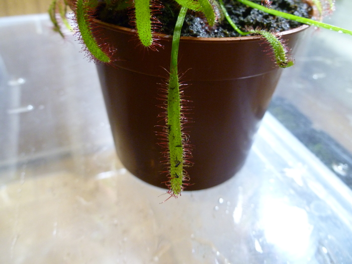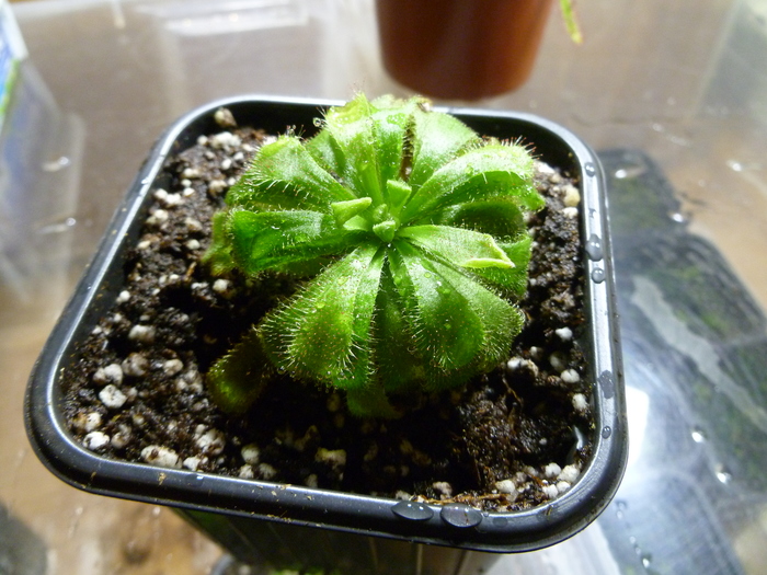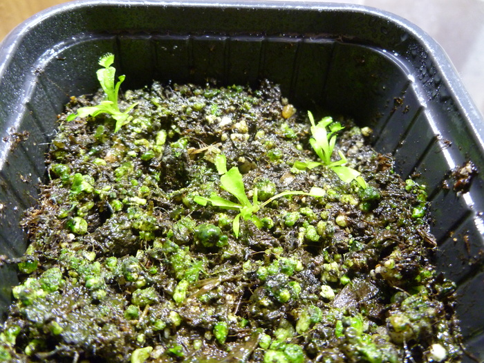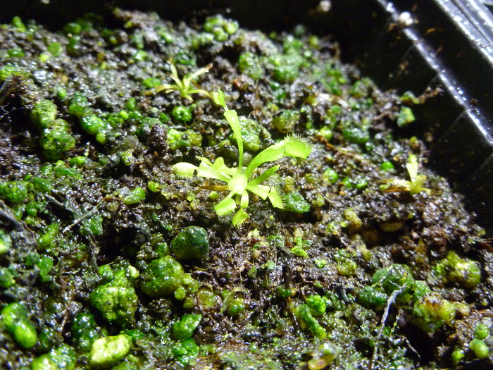 появилась 2 пара листьев. на концах угадываются ловушки. но они подрастут и раскроются еще не скоро. кстати, тут их полный размер не превышает 5-6мм.