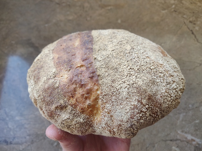 Хлеб на закваске , "серый" - 10% муки ржаной, гидратация около 80%.