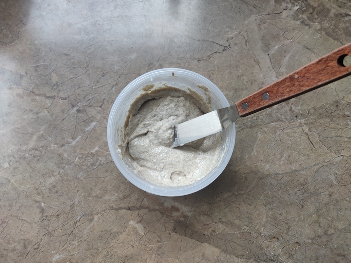 К закваске добавляем 50 г муки и 50 г воды, отставим под полотенце.