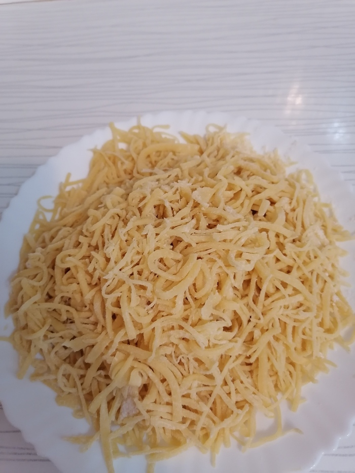 Если вы хотите заготовить лапшу впрок, просто раскидайте её на противень, и дайте высохнуть.