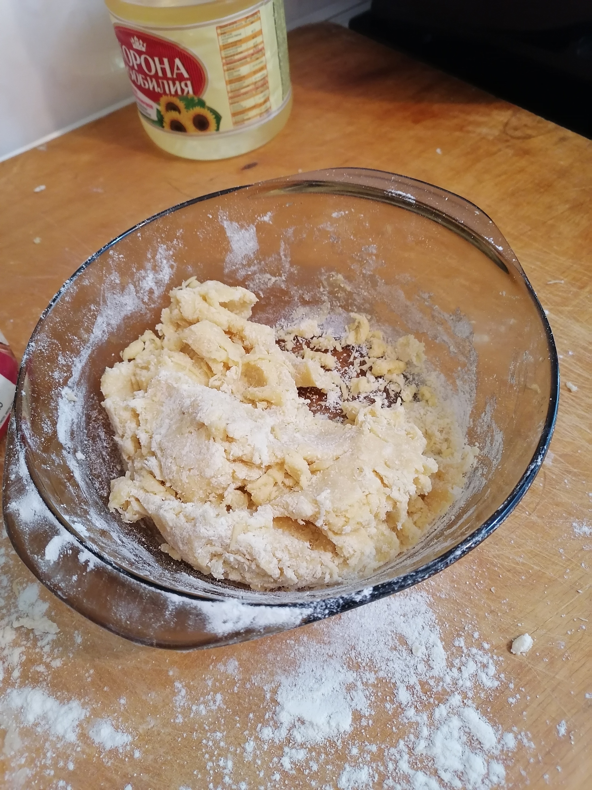 Хорошо разминаем. Если он суховат, можно не стесняясь, прямо на доску добавить немного масла. Если жидковат, муки и манки по немногу.